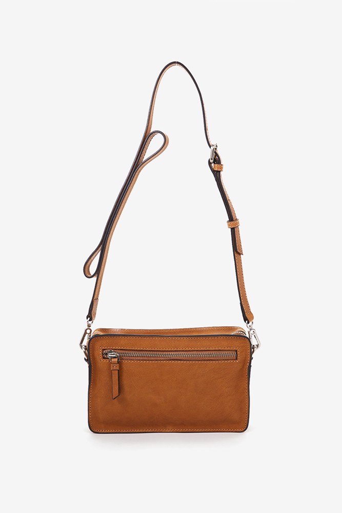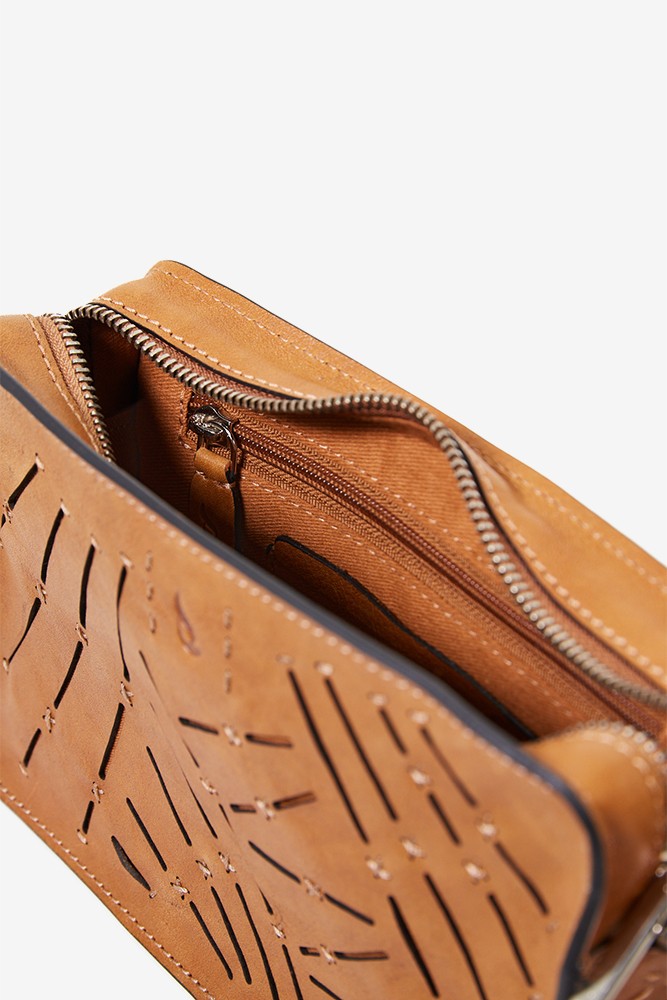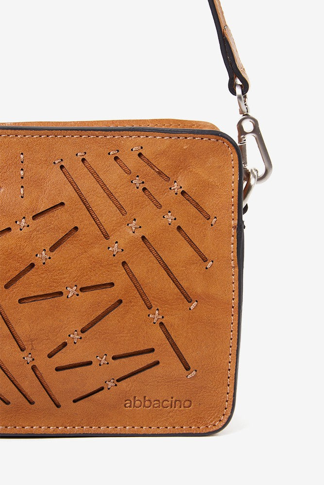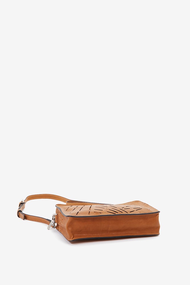 Women's mini crossbody bag in cognac perforated leather