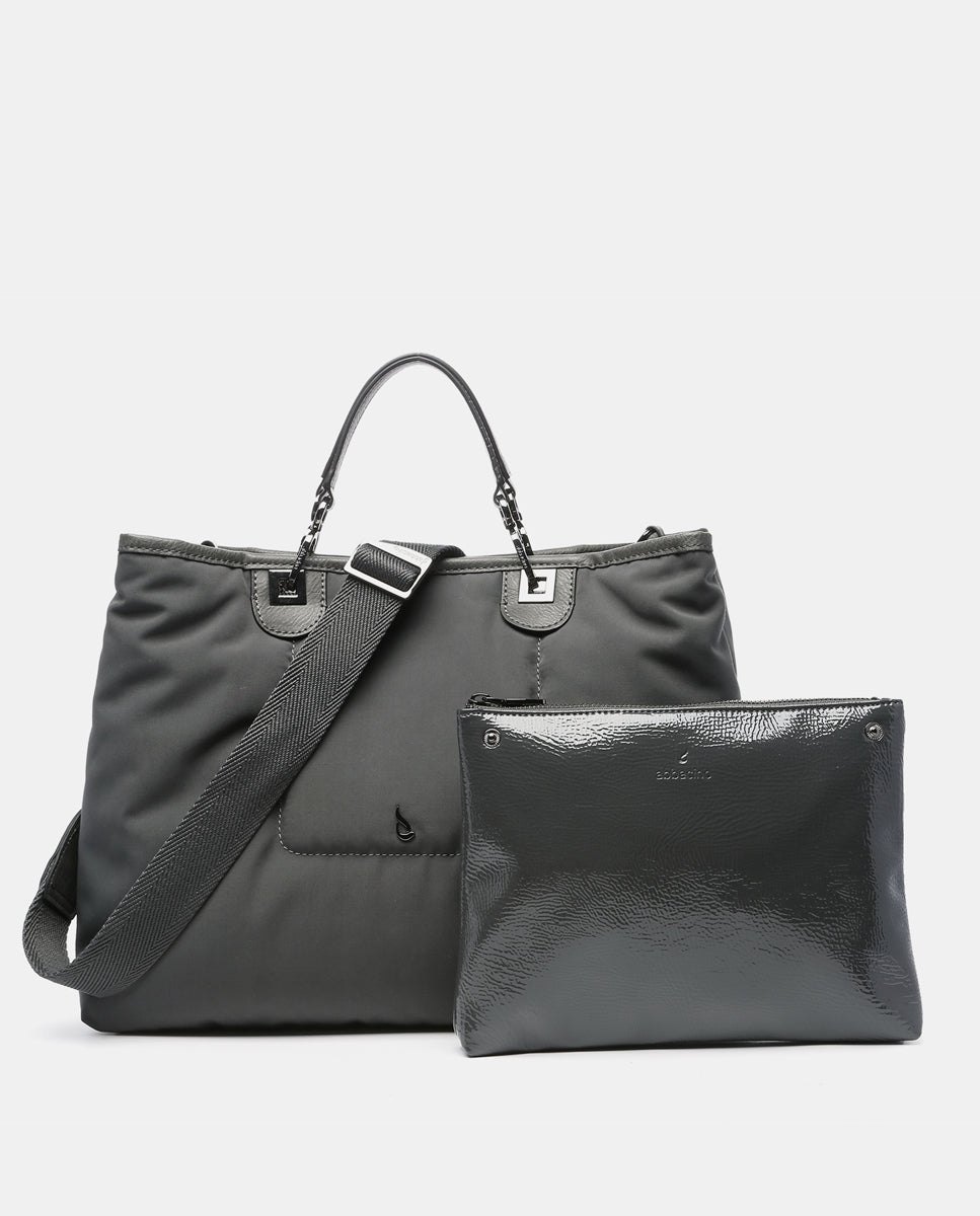 Large nylon handbag in grey