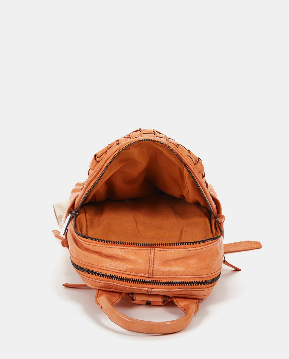 Women's backpack made in premium leather. A very comfortable and functional model with a maxi braided trim. Its washed effect gives it a very fresh and summery feel.