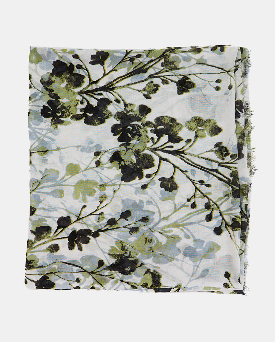 Pañuelo de viscosa con estampado floral verde