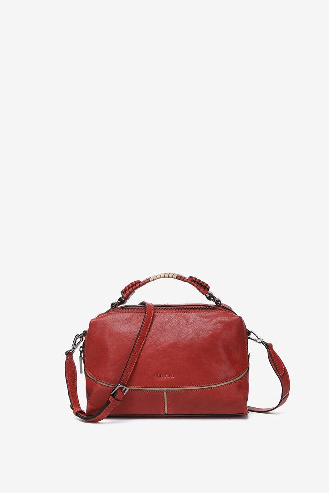 Women's crossbody bag made of premium leather. A design with a classic and minimalist cut featuring small braided details on its handle. An authentic timeless, elegant, and practical wardrobe staple. Its main features include: