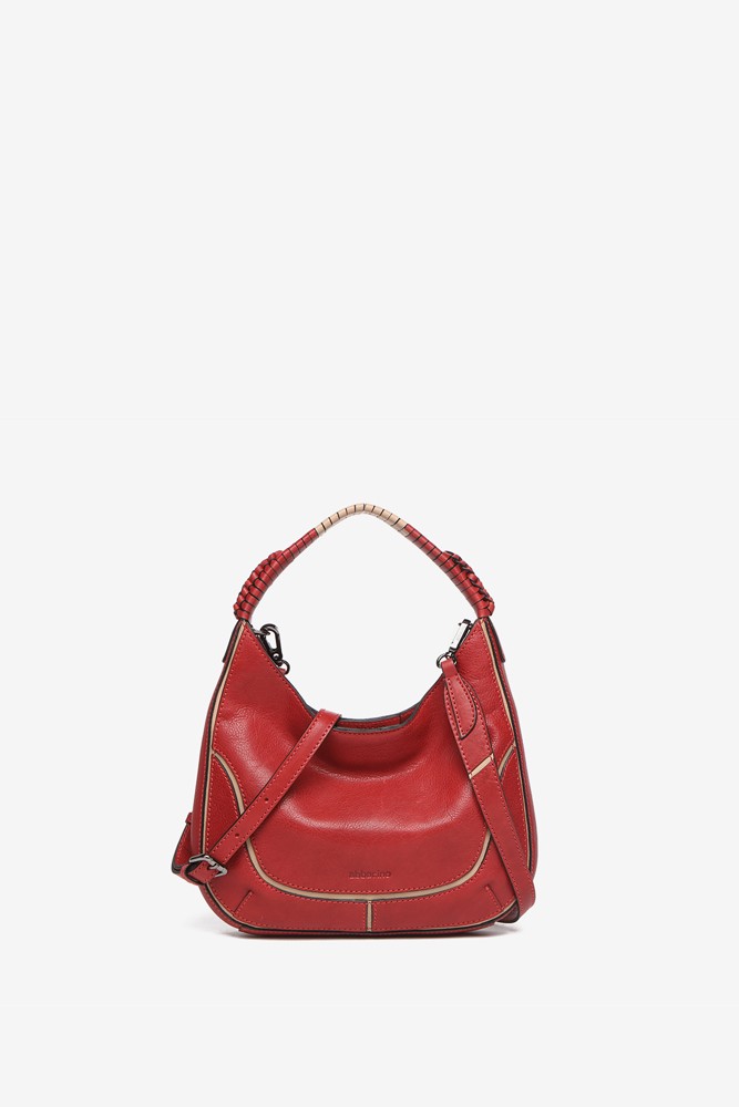 Small women's shoulder bag made of premium leather. A design with a classic and minimalist cut featuring small braided details on its handle. An authentic timeless, elegant, and practical wardrobe staple. Its main features include: