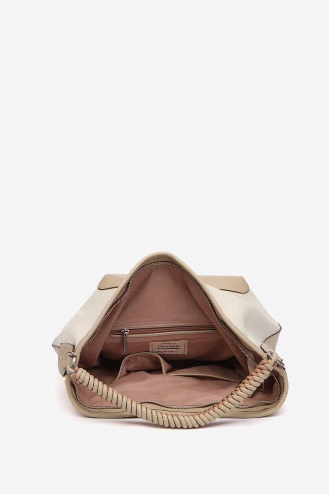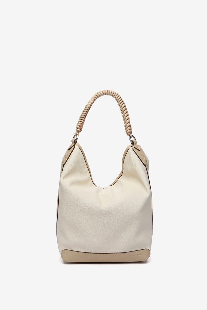 Women's shoulder bag crafted from recycled materials. A very casual and simple model that combines two color tones. Spacious, light, and fluid, it will become a staple for spring and summer days. Its main features include: