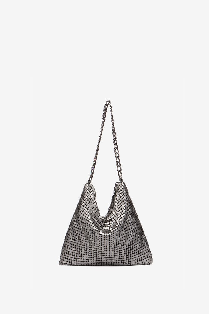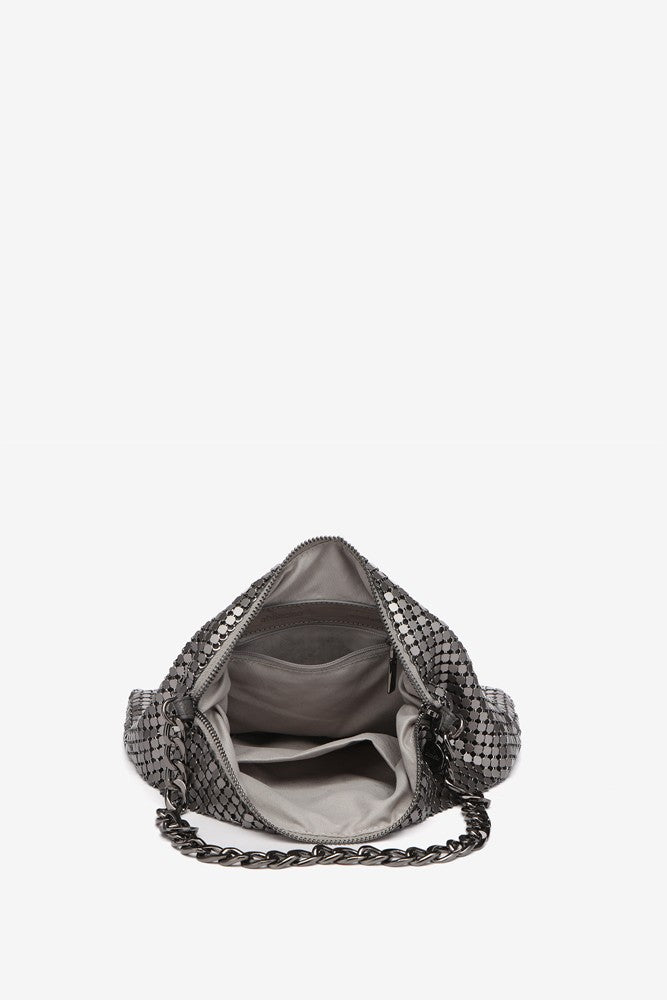 Metallic mesh shoulder bag in silver