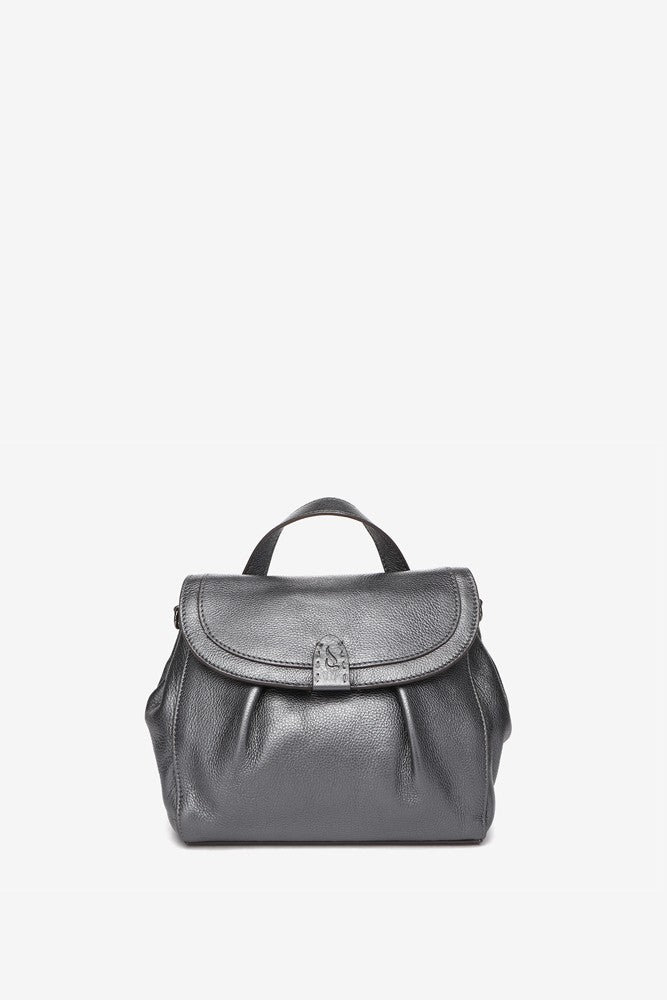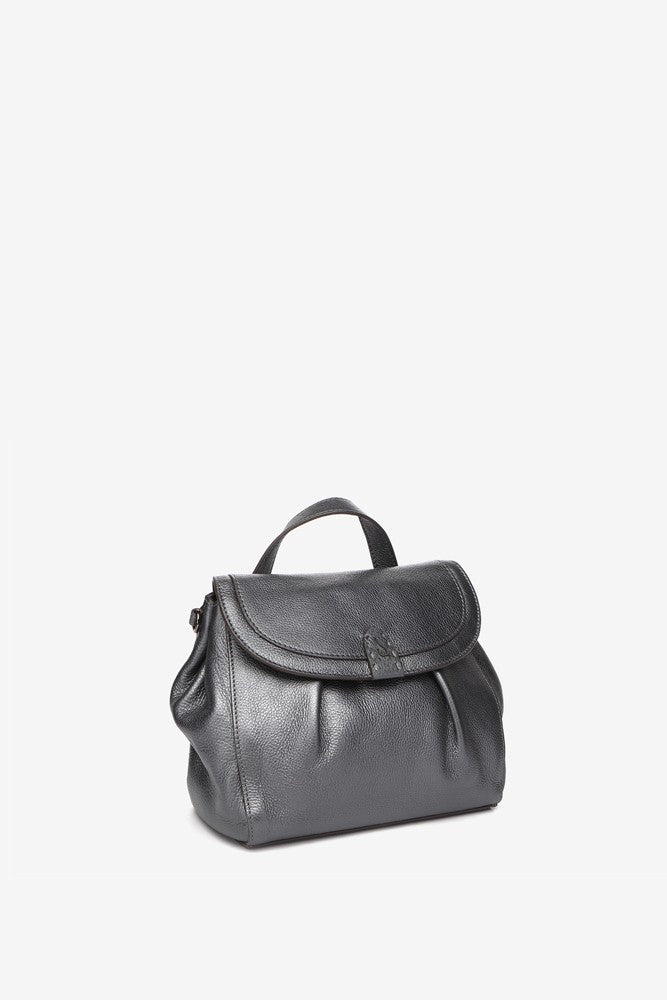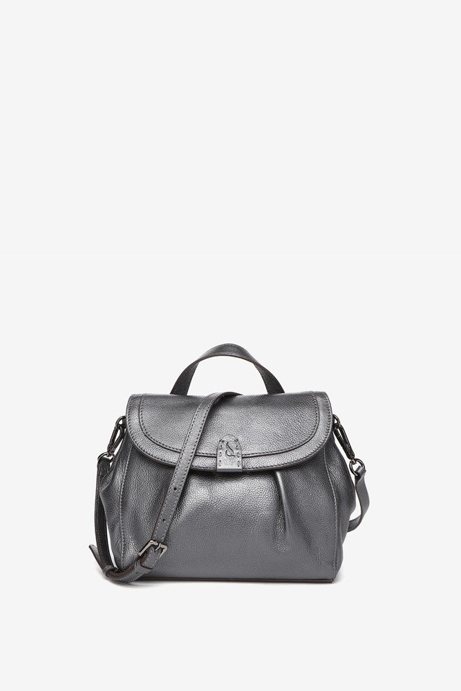Leather shoulder bag in silver