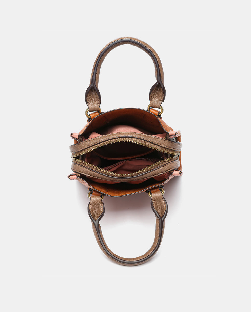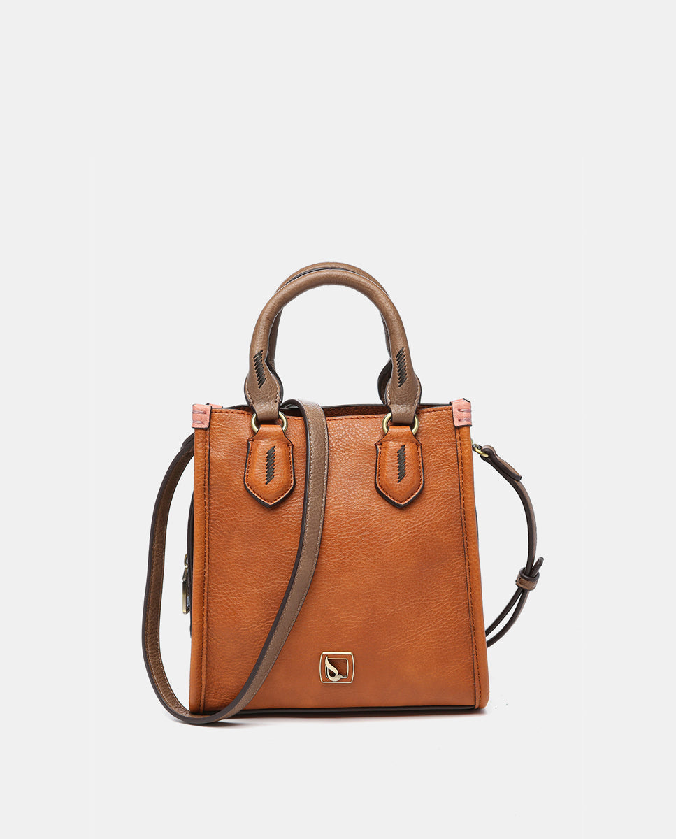 • It combines its double handle with a shoulder strap, which can be adjusted and is removable, and its handles are dyed in a different colour to the main colour of the bag.