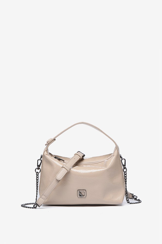 Small women's shoulder bag in patent leather. A fabric that is making a strong comeback this new season. This model is perfect for those users looking for an original accessory, with which to stand out and add a distinctive touch to their looks, both day and night. Its main characteristics are: