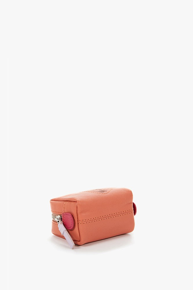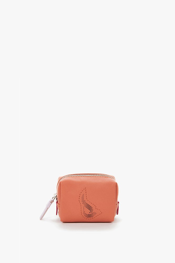 Small women's leather toiletry bag with orange die-cut logo