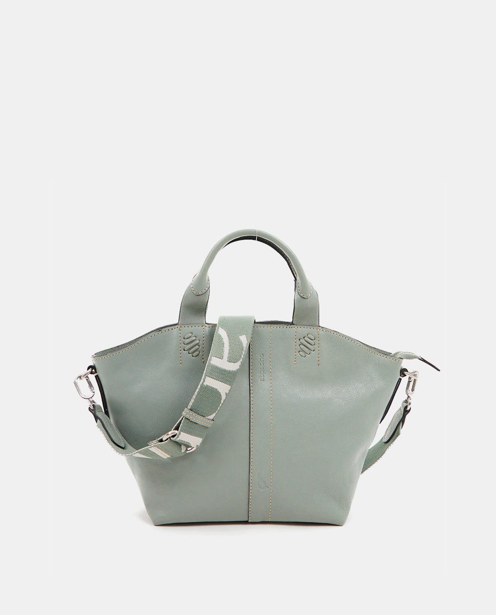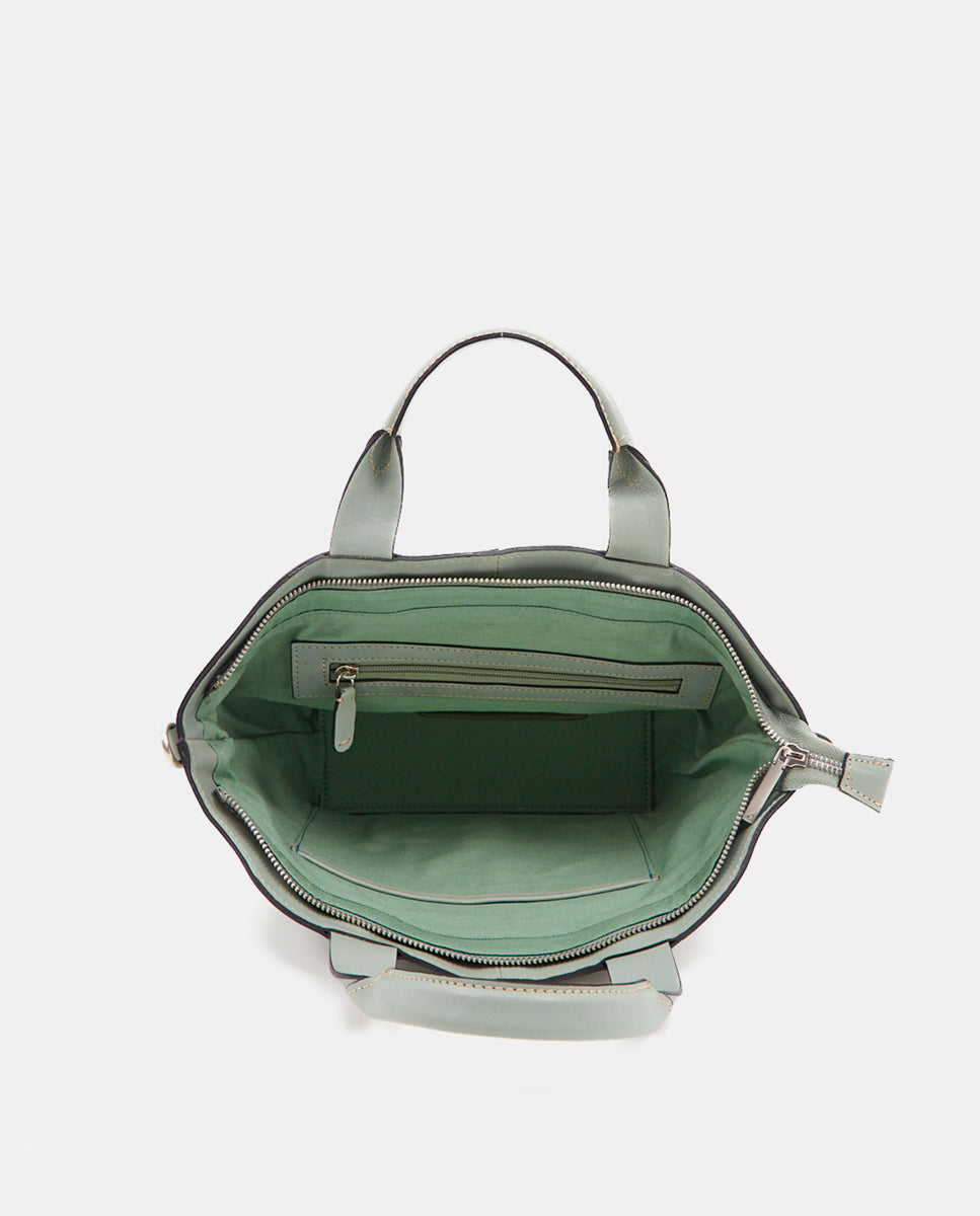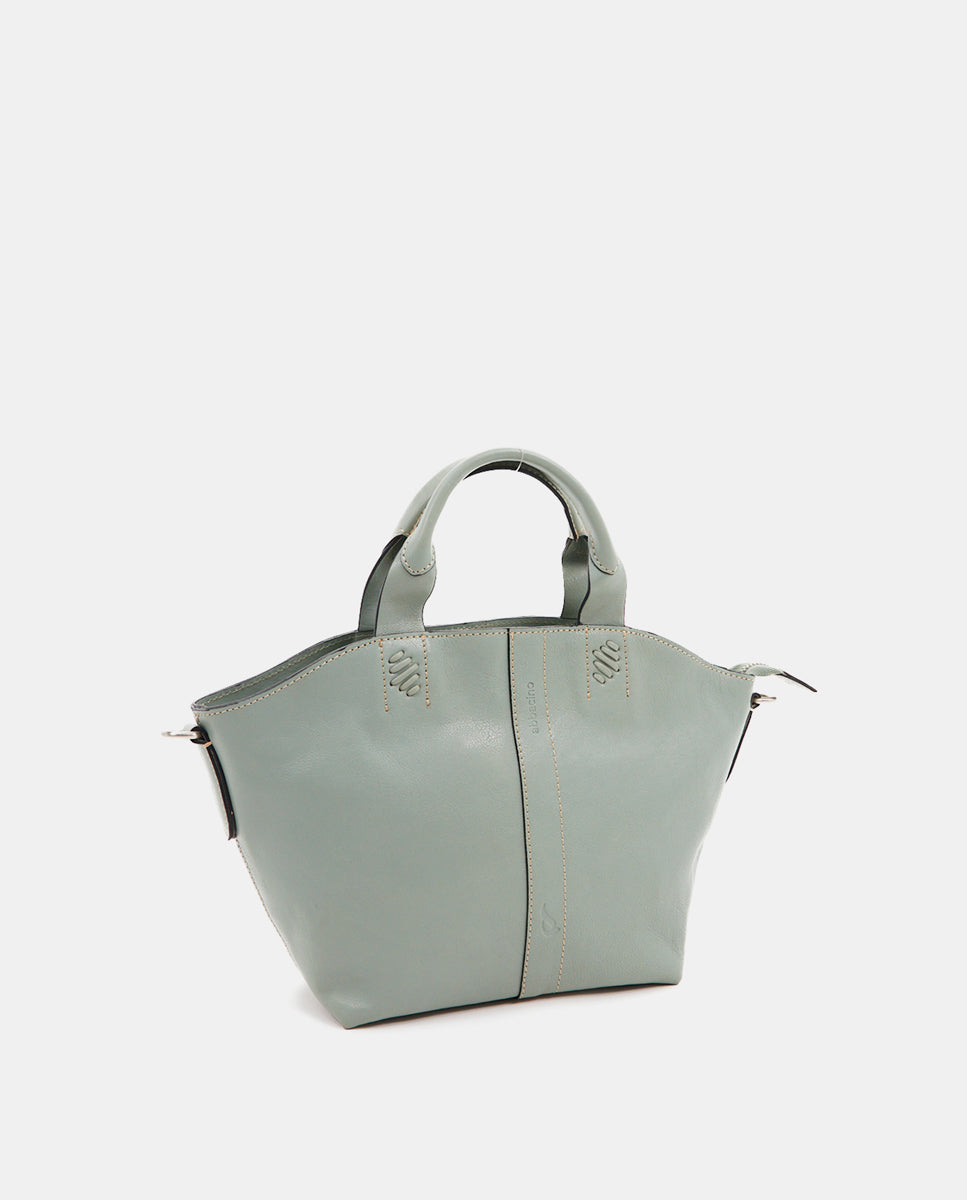Small women's shopper bag in green leather