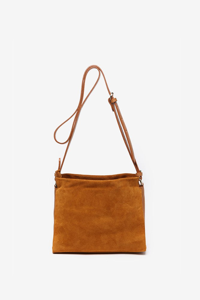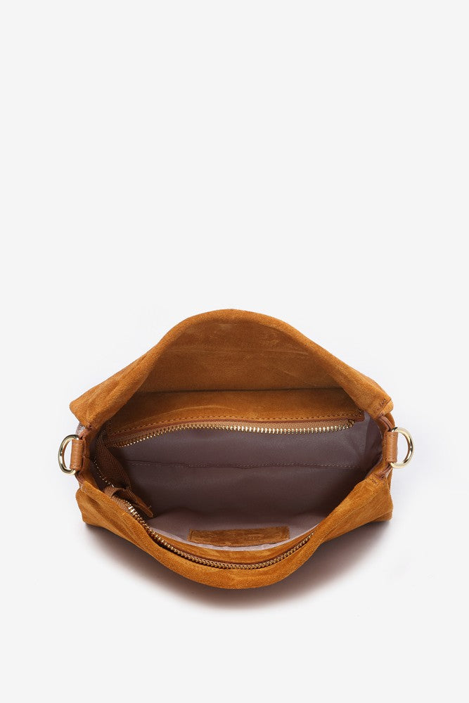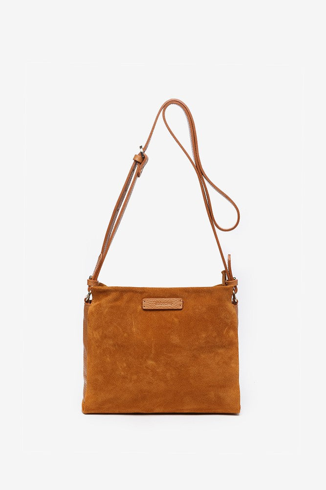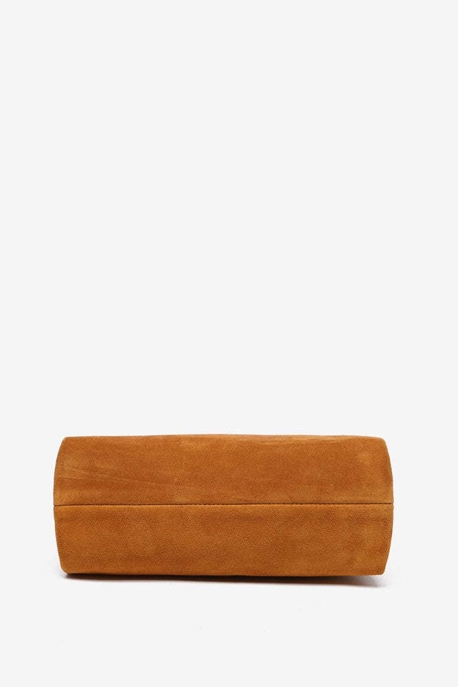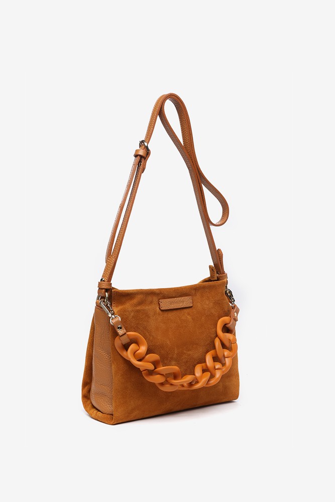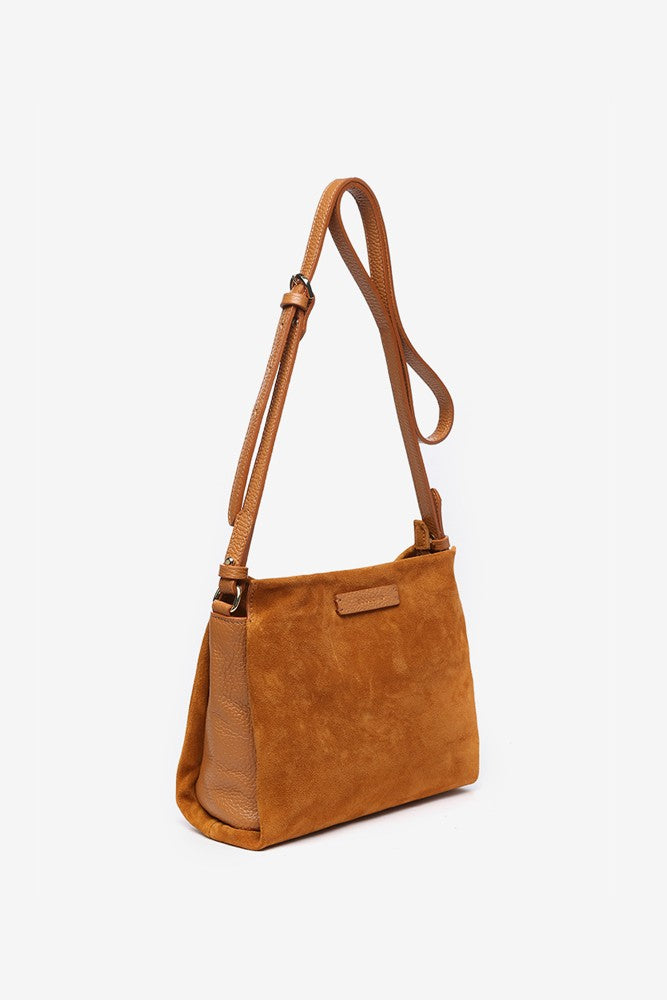Suede shoulder bag in cognac
