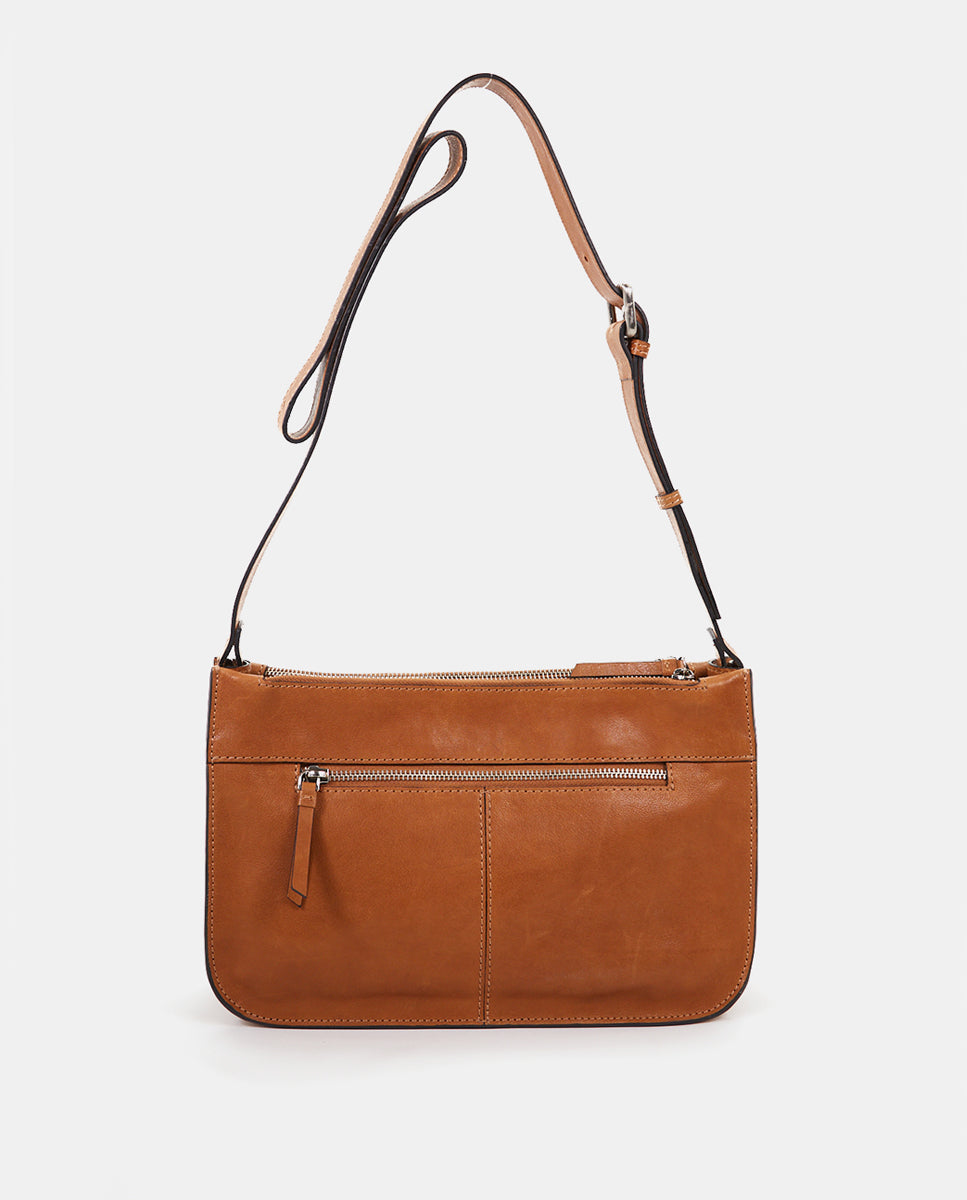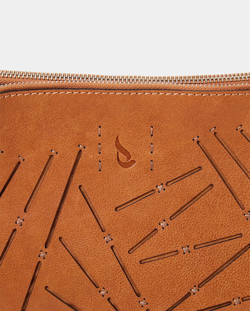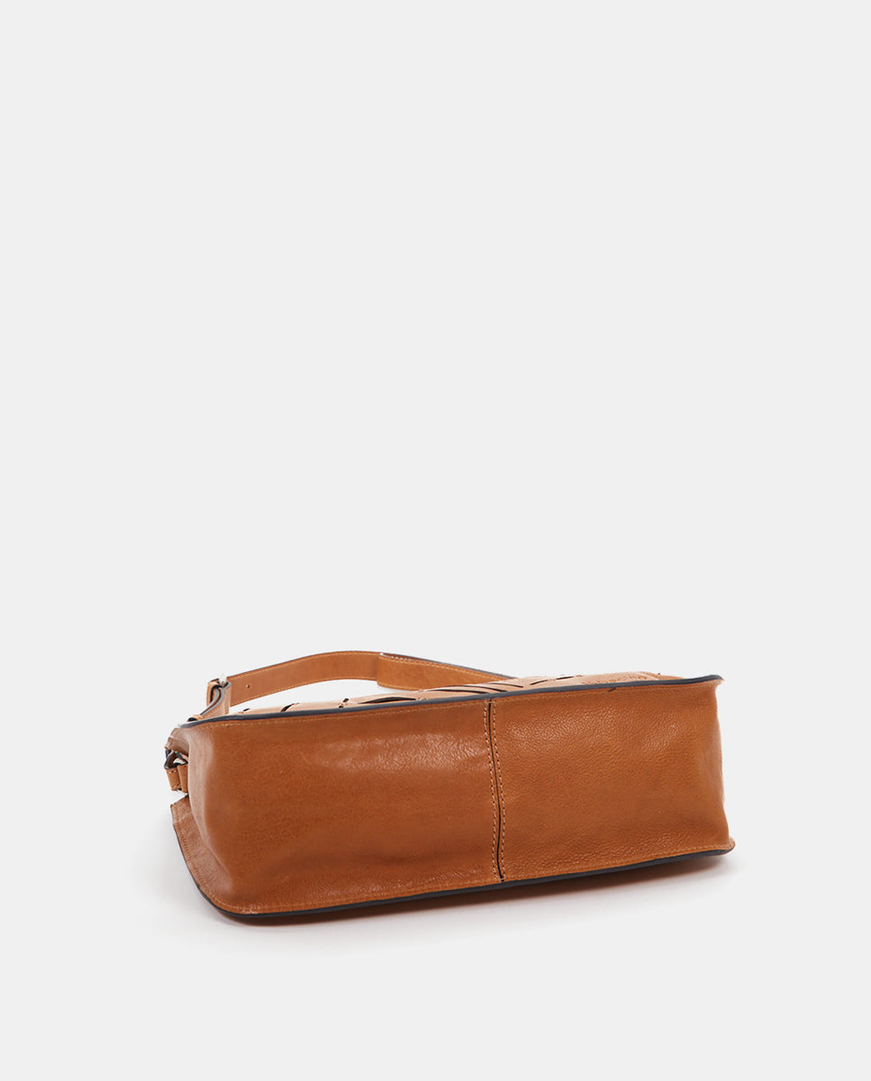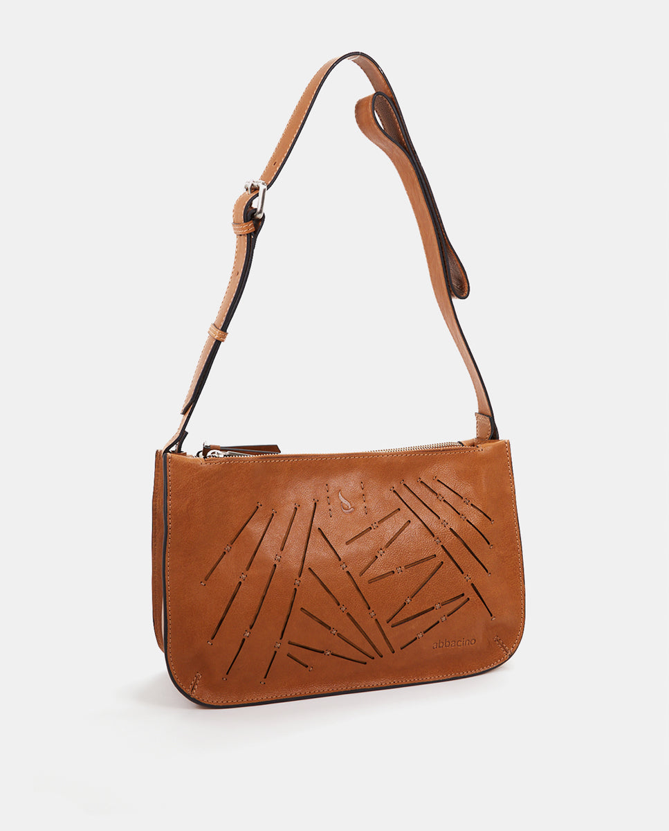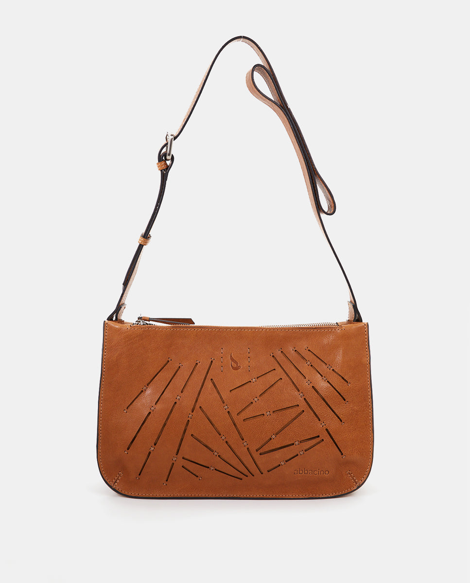 Women's crossbody bag in cognac perforated leather