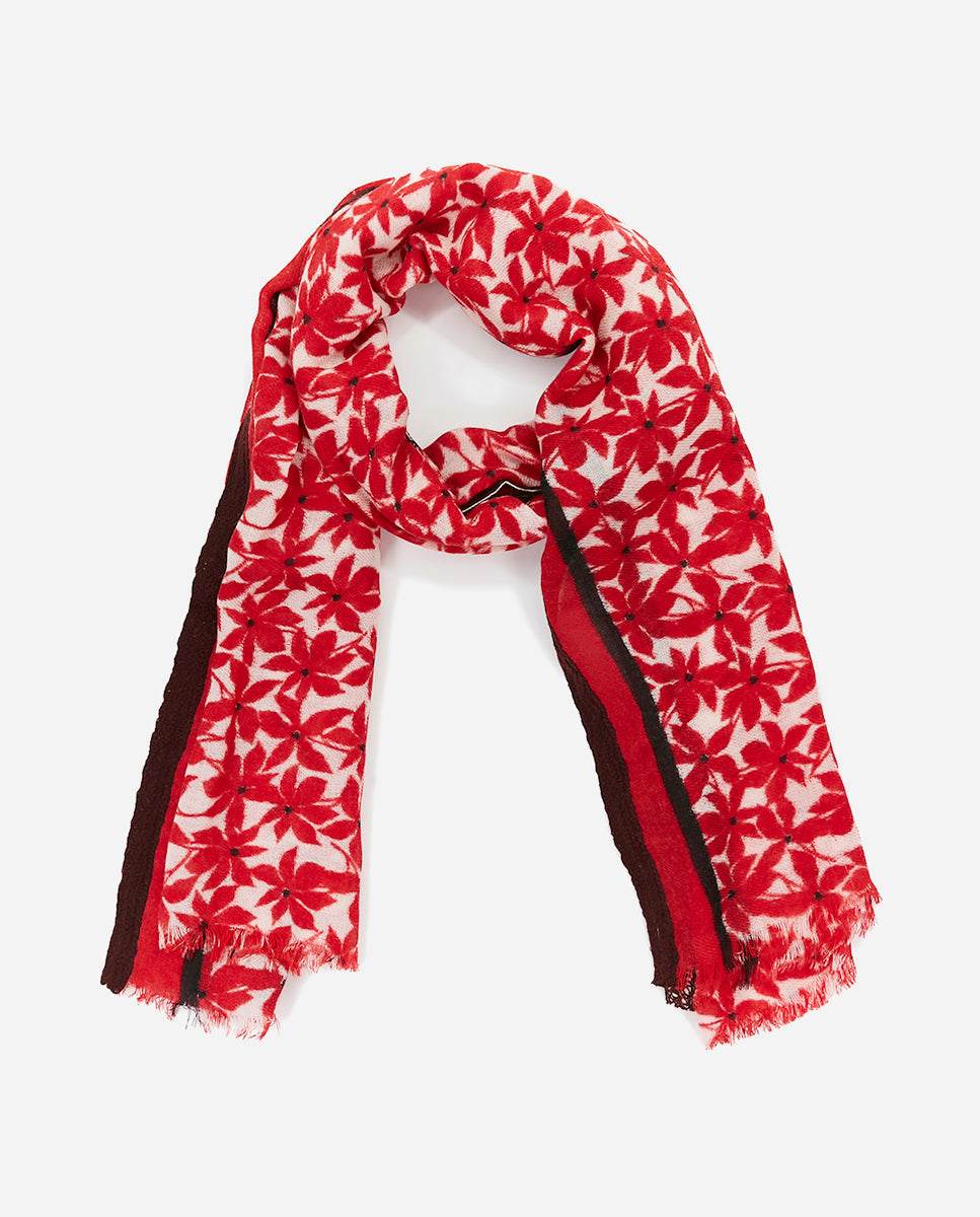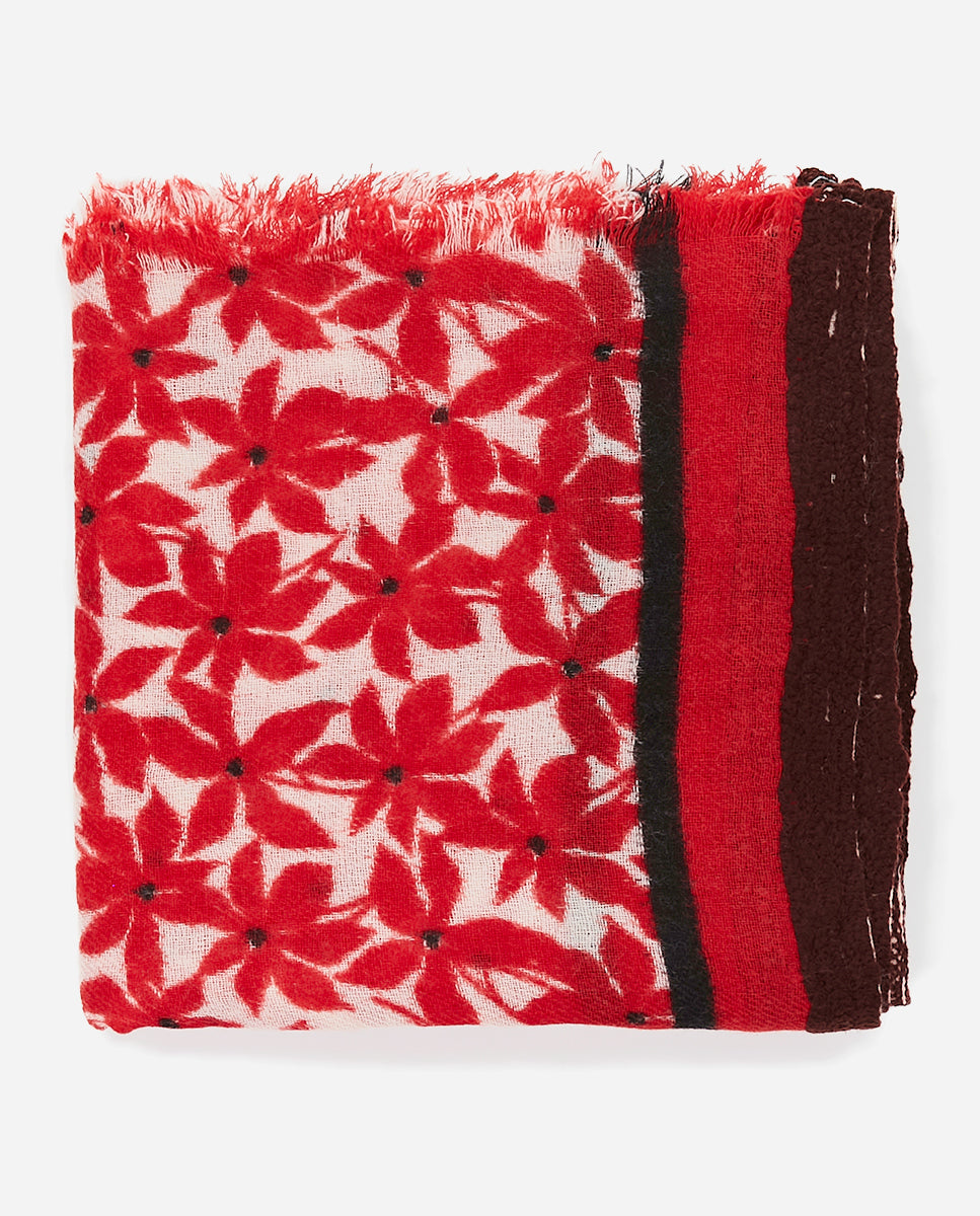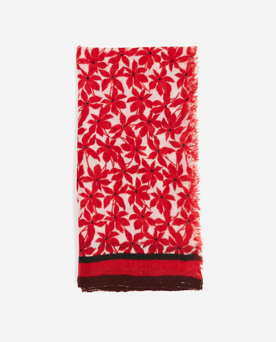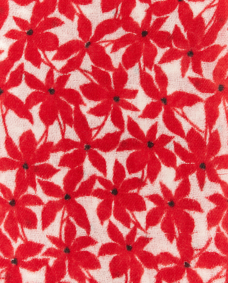 Women's wool scarf with mini floral print in red