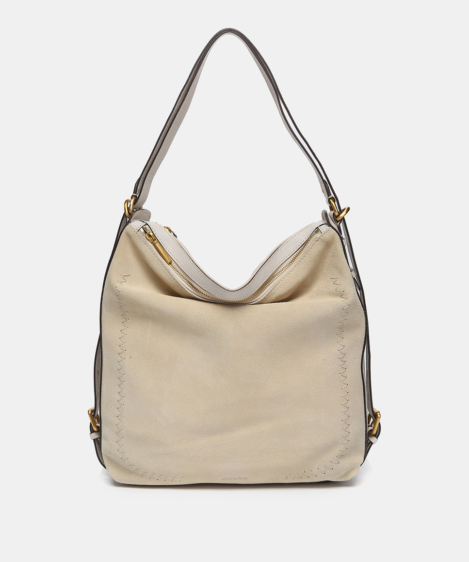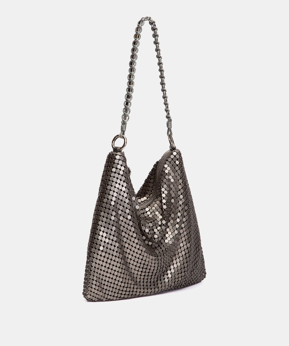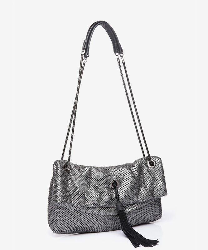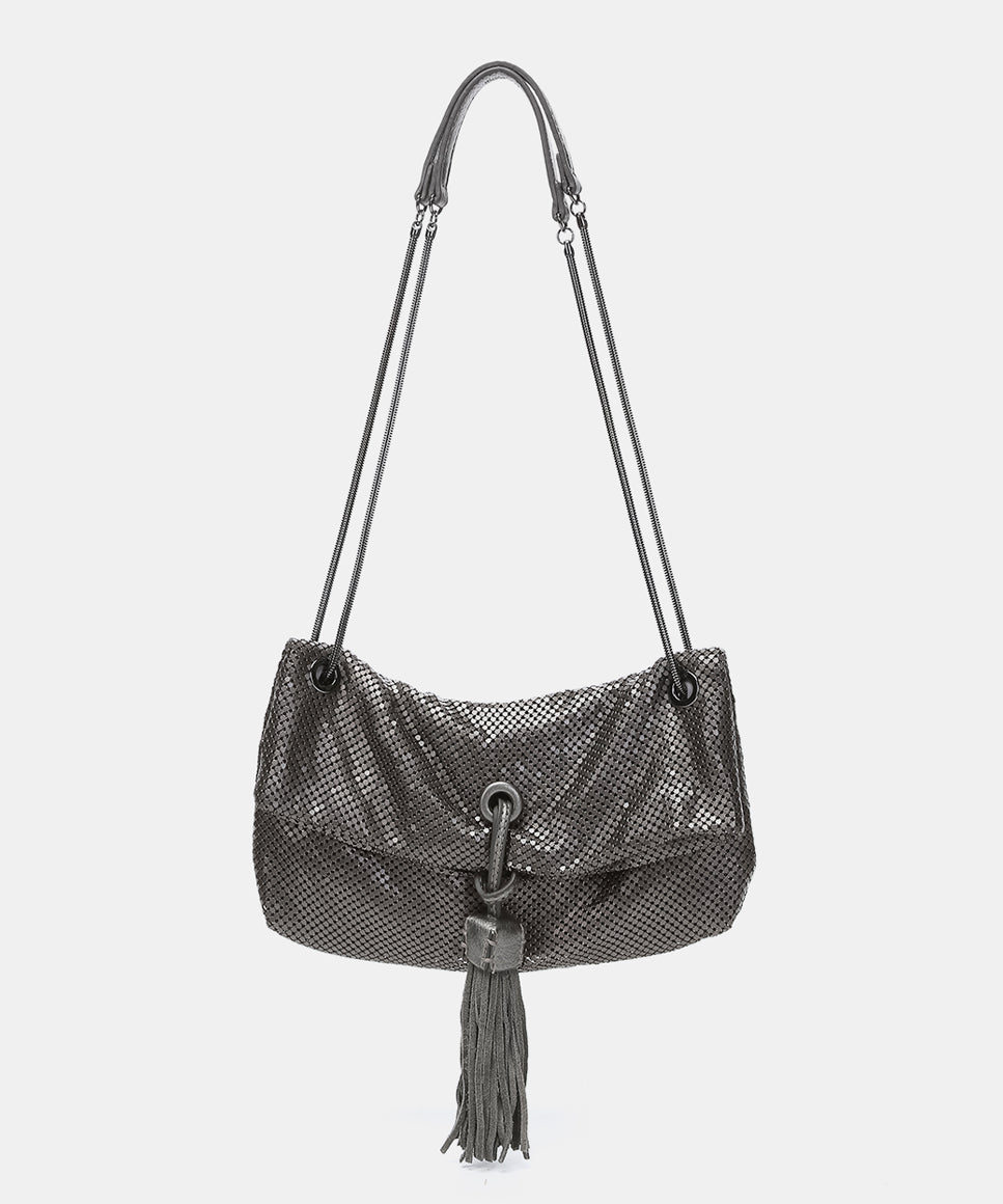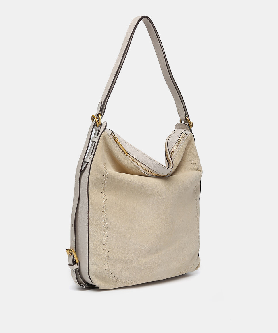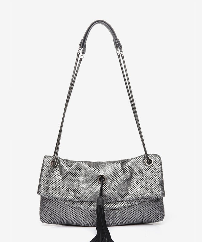 Borsa a tracolla da donna a sacco in pelle fustellata color lavanda