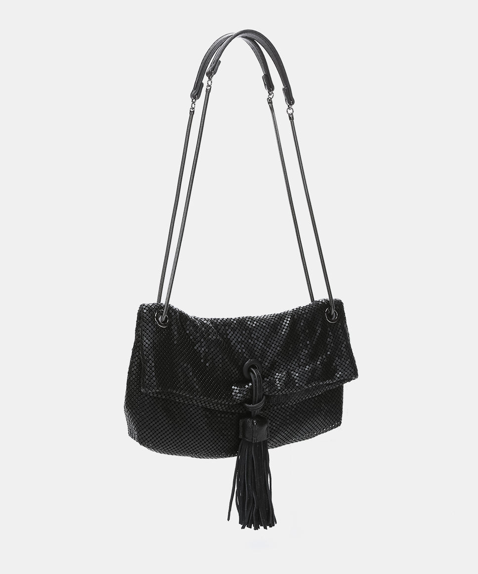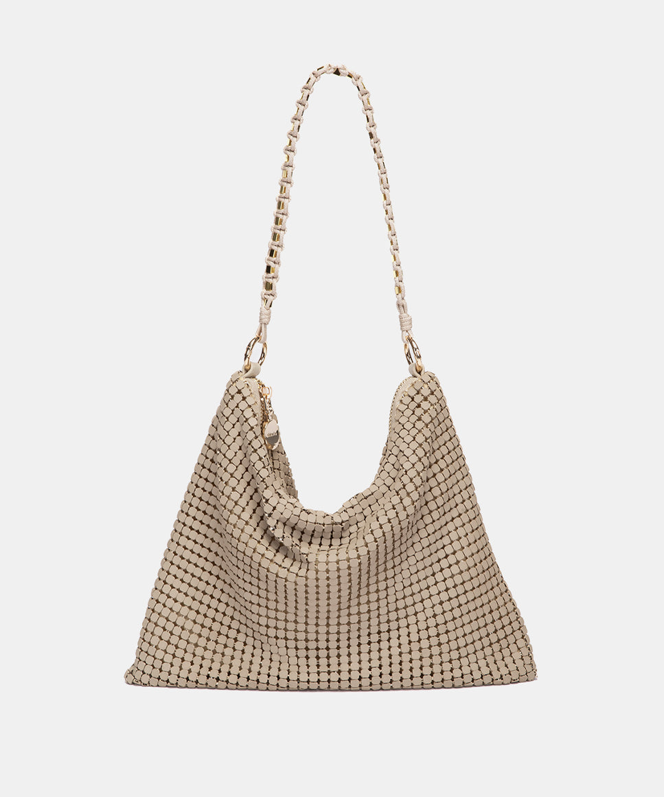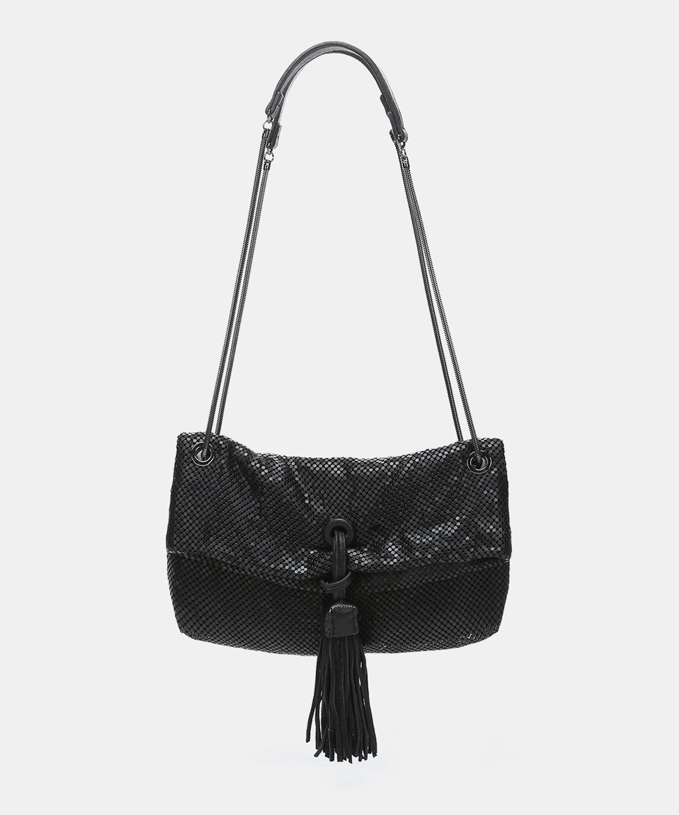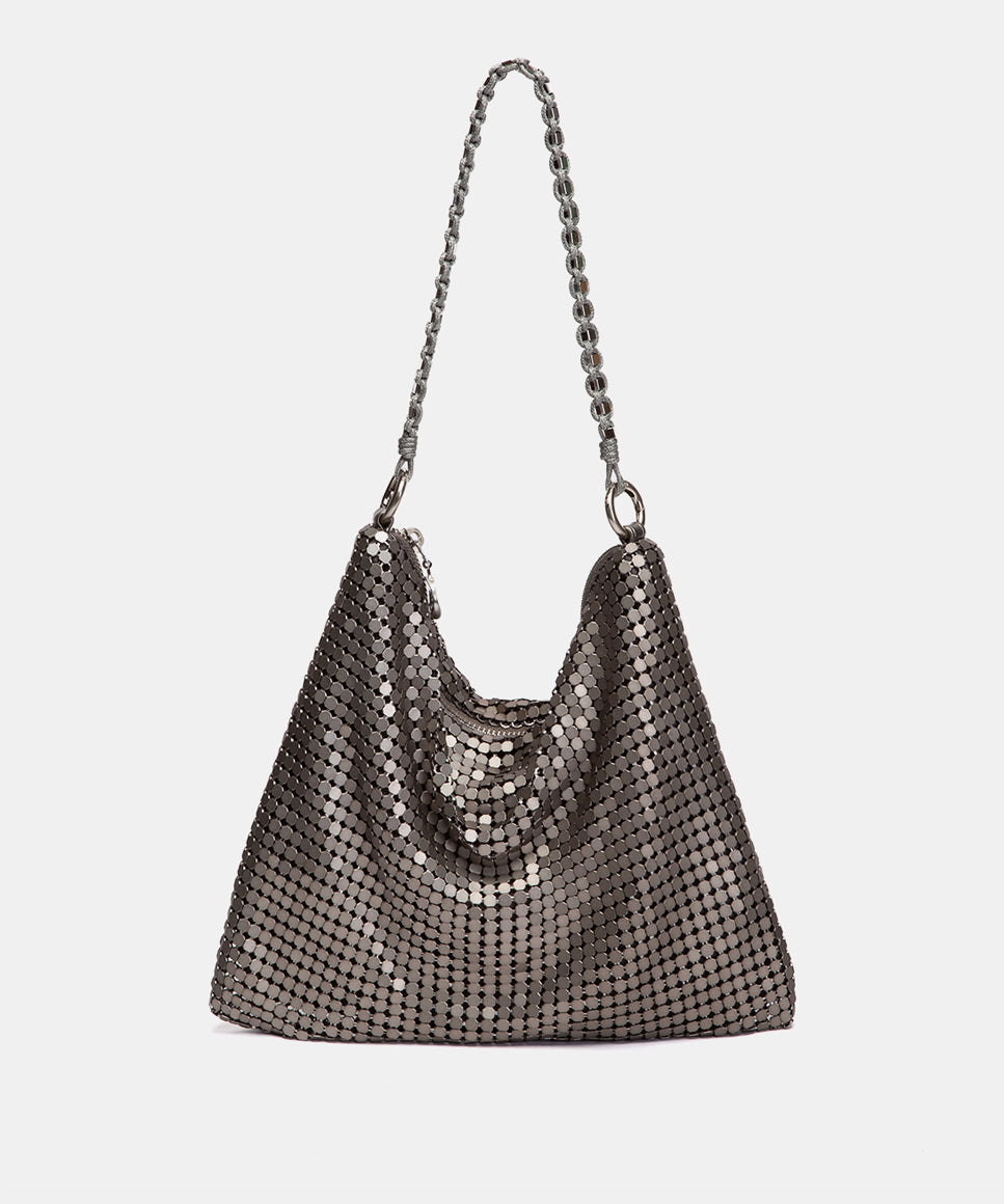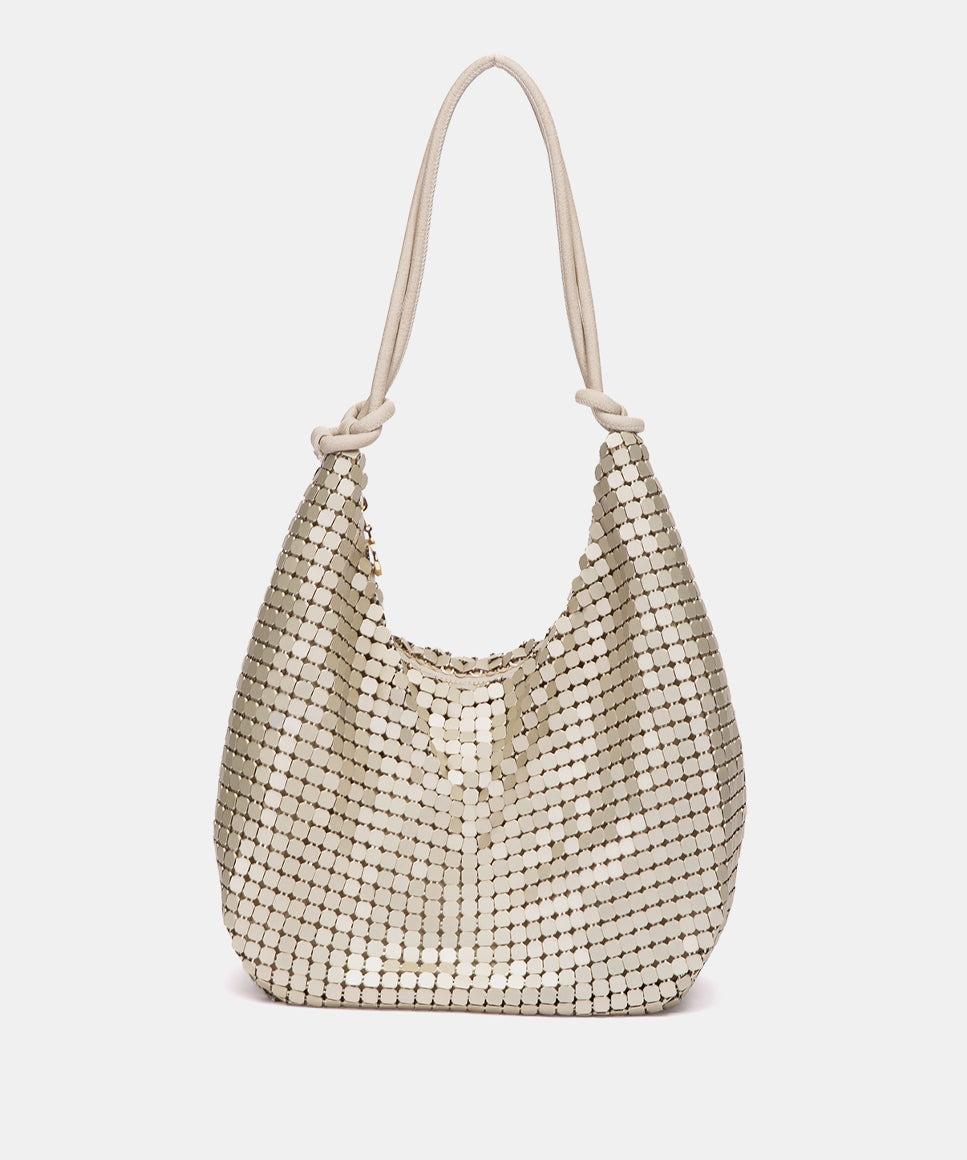 Borsa a tracolla da donna a sacco in pelle fustellata color lavanda