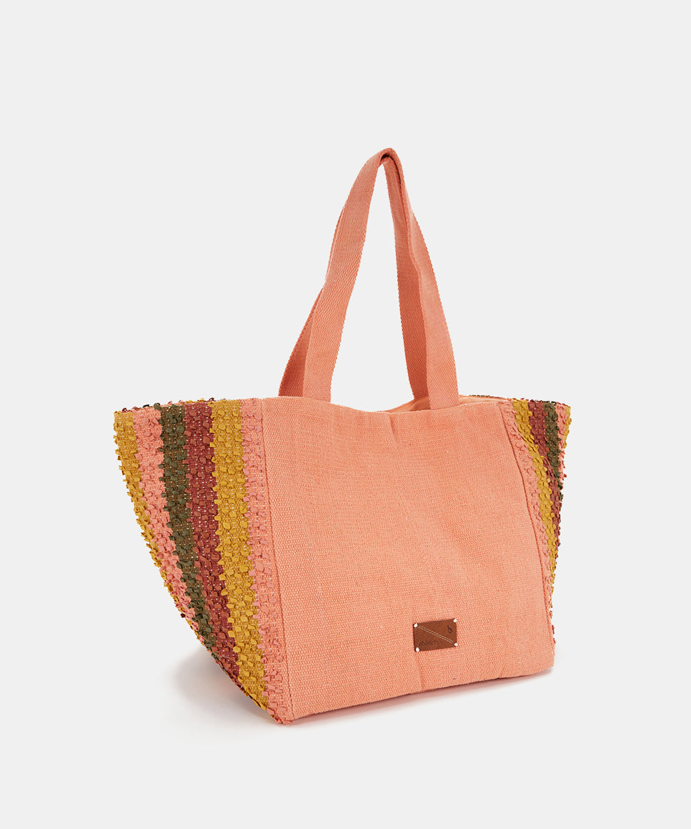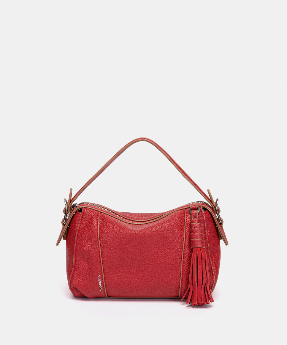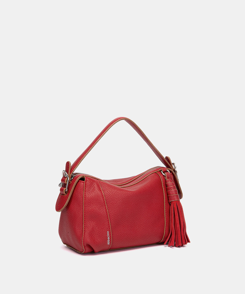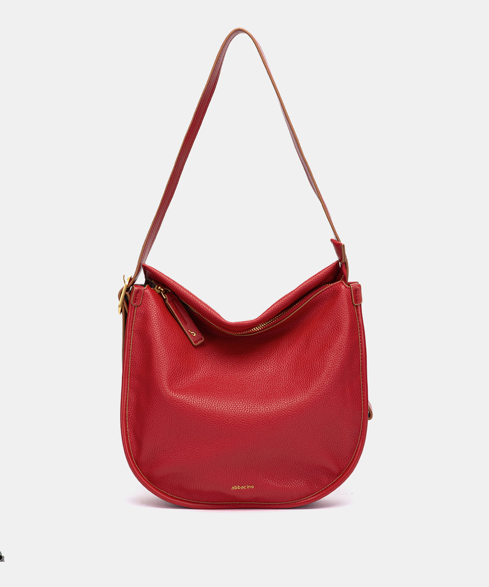 Borsa a tracolla da donna a sacco in pelle fustellata color corallo