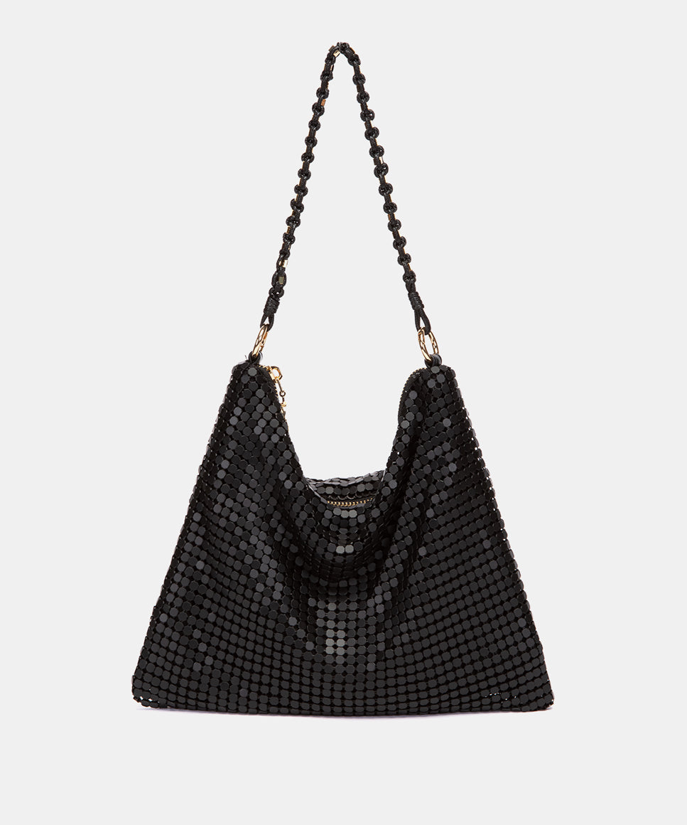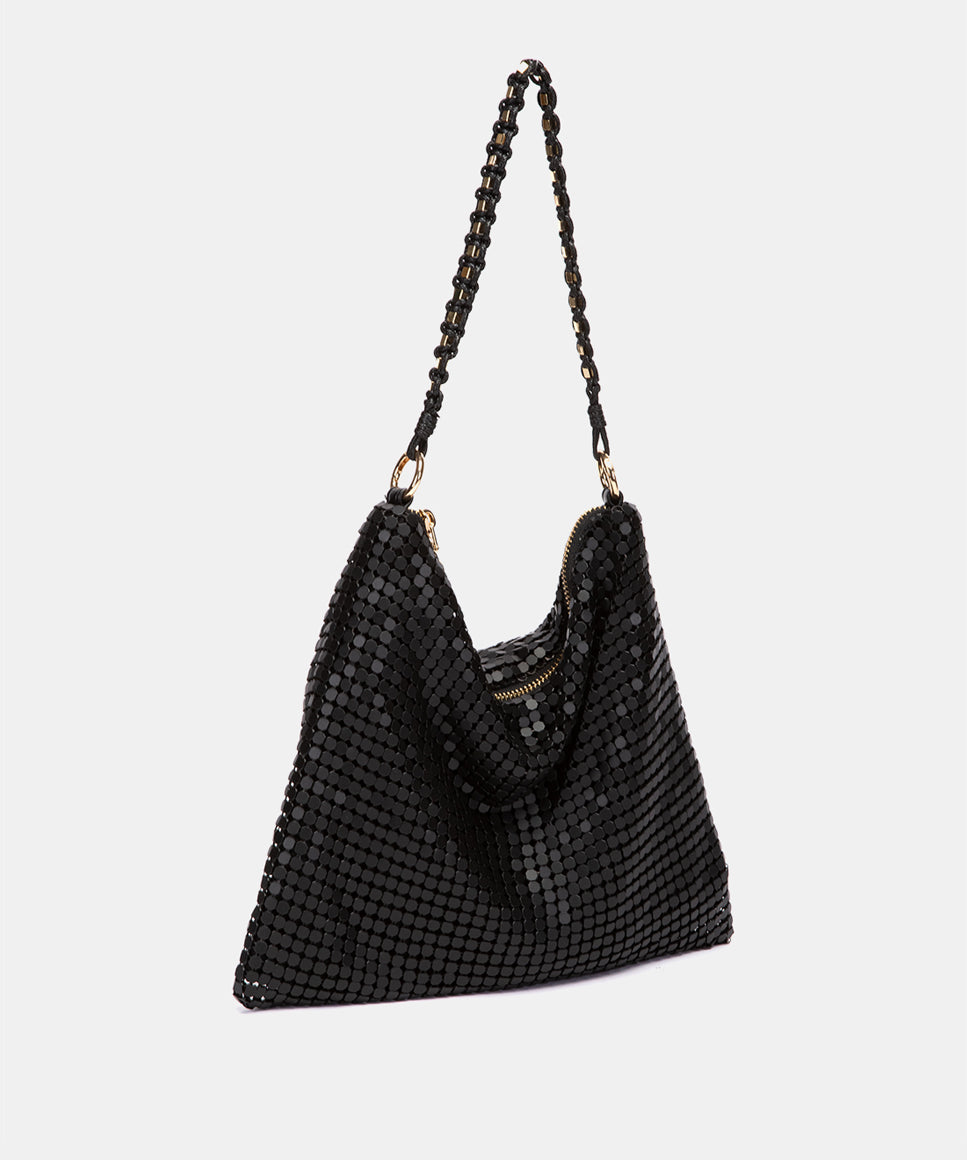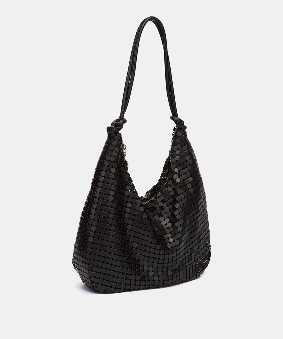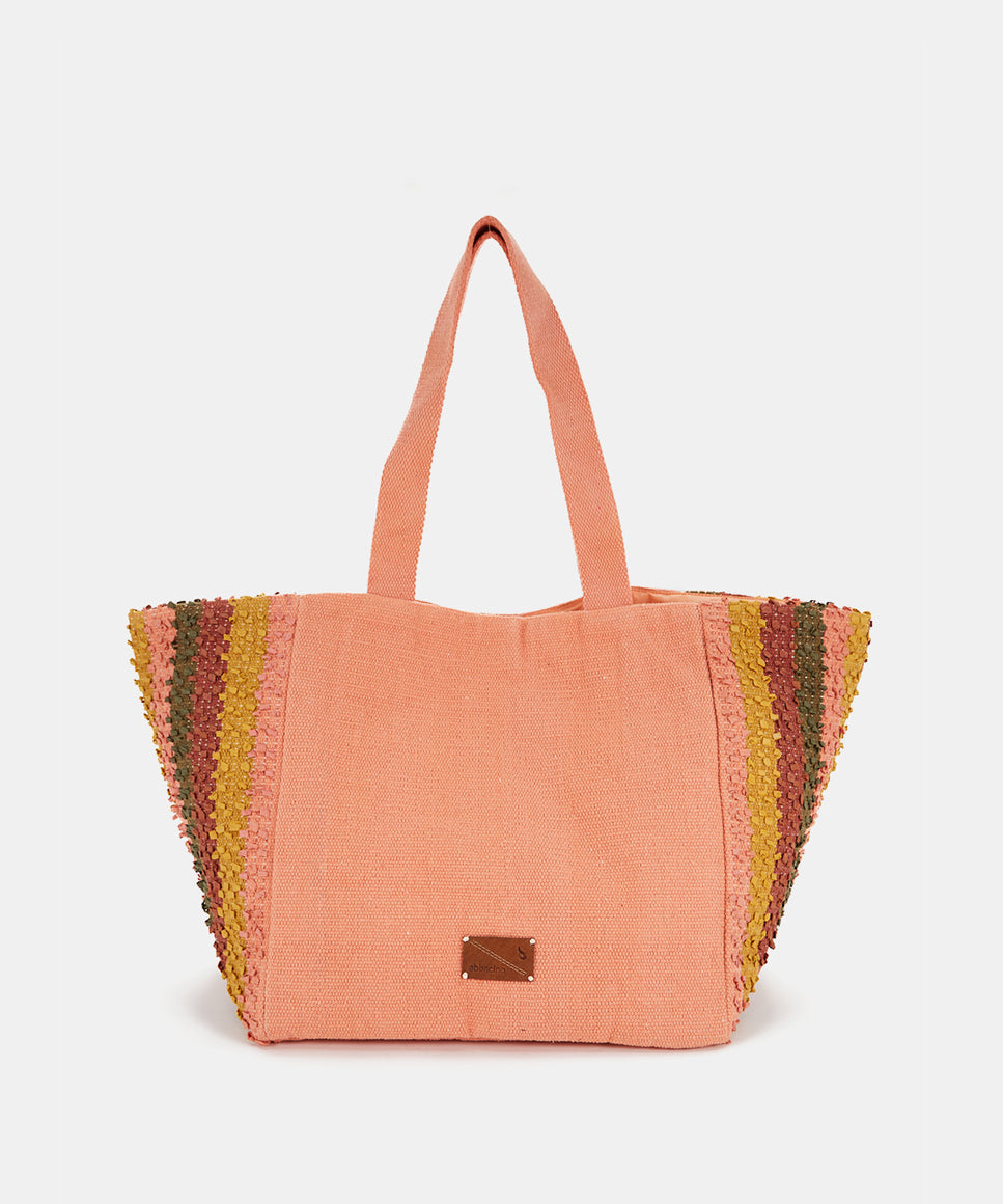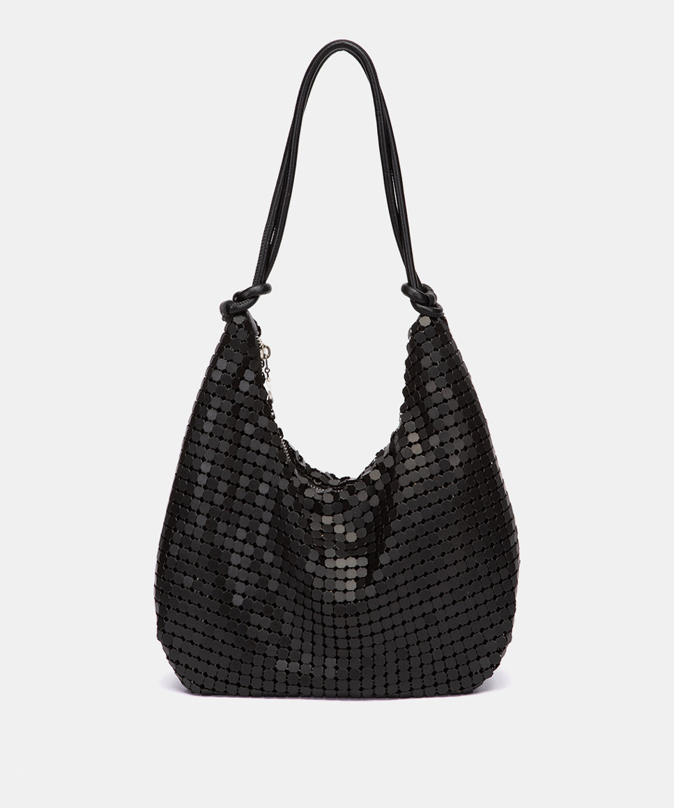 Borsa a tracolla da donna a sacco in pelle fustellata color corallo