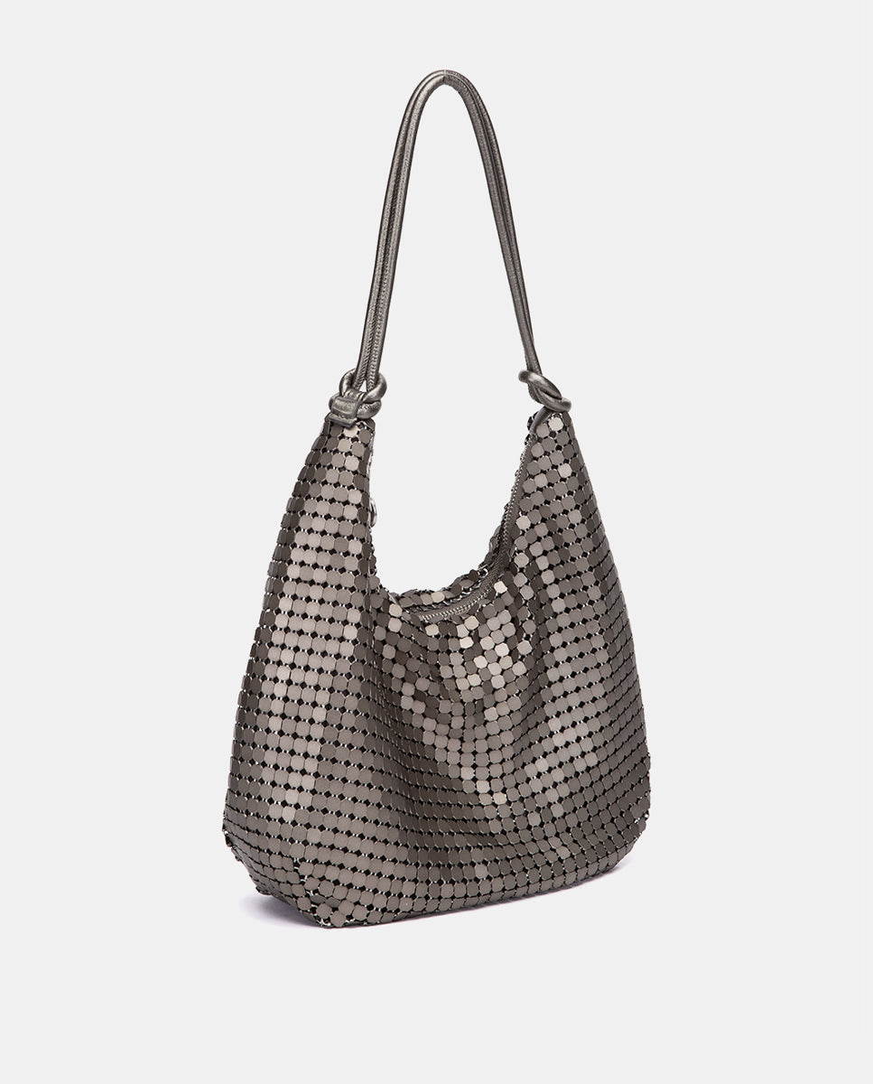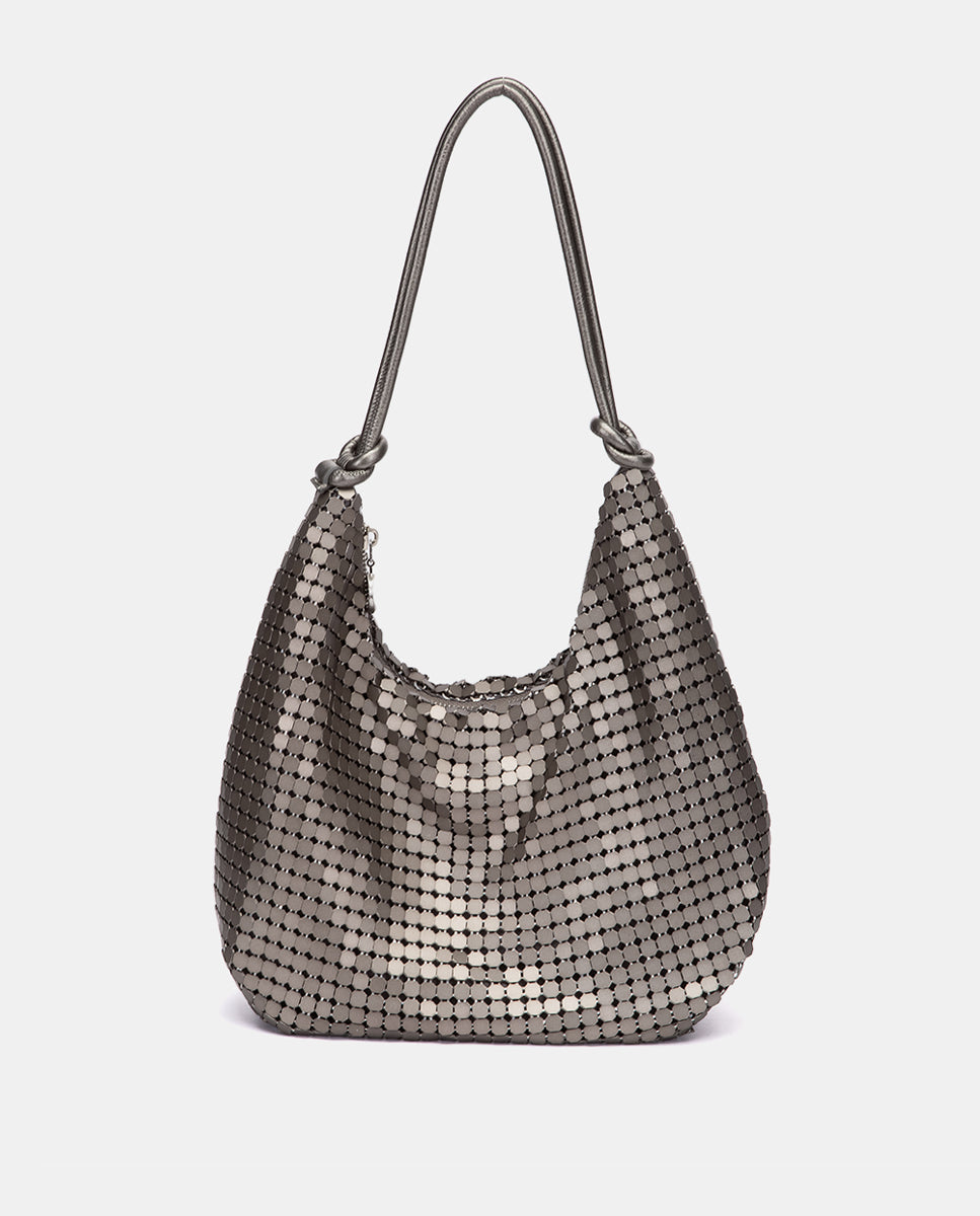 Bolso de fiesta en malla metálica plateada