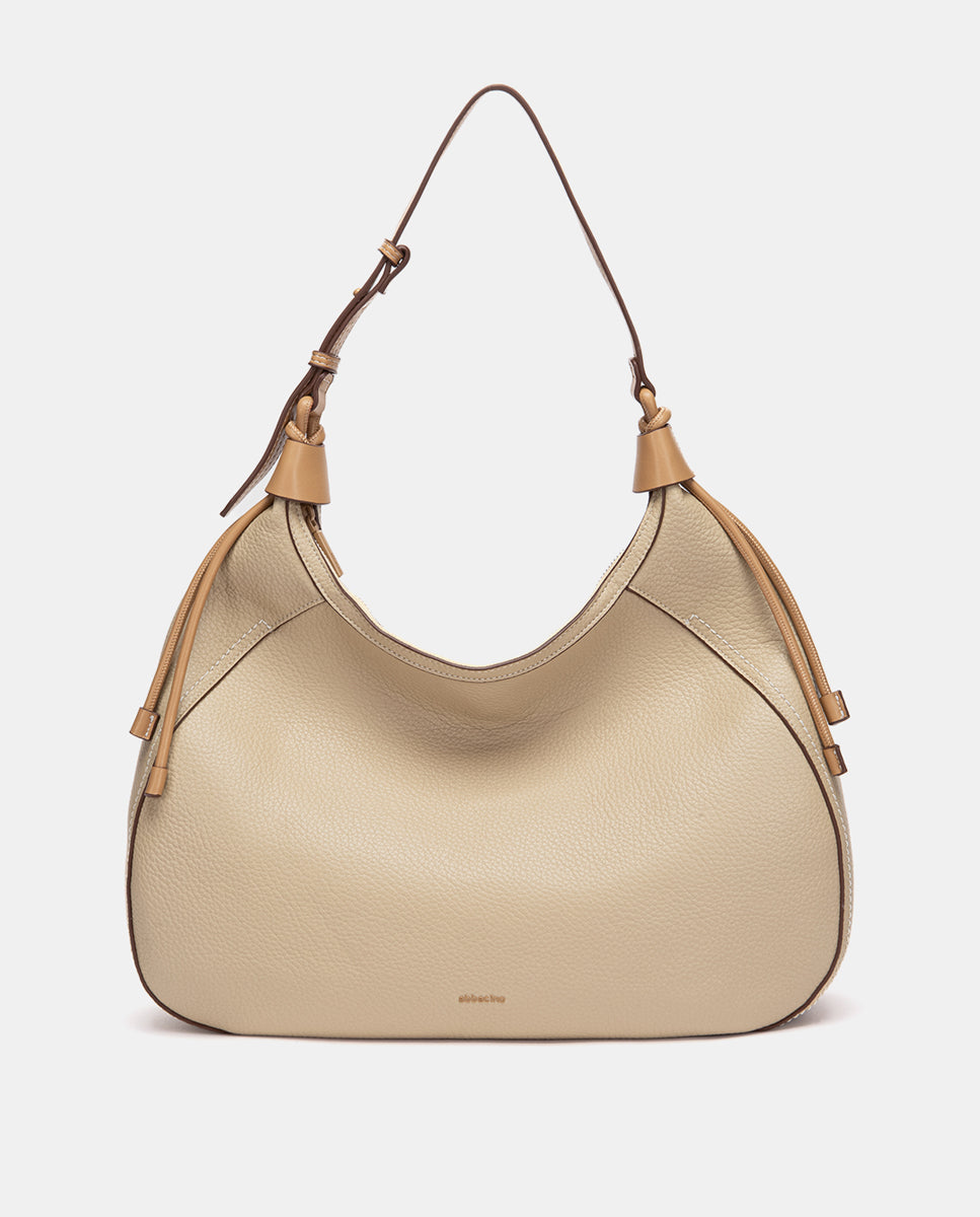 Bandolera grande en piel beige