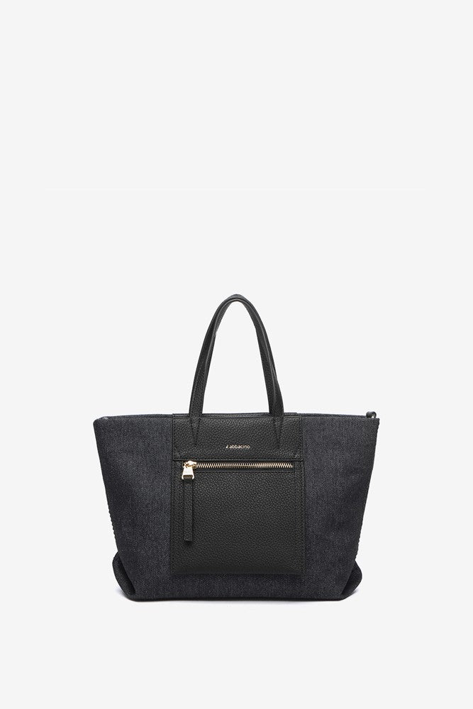 Piccola borsa shopper in tessuto jeans nero