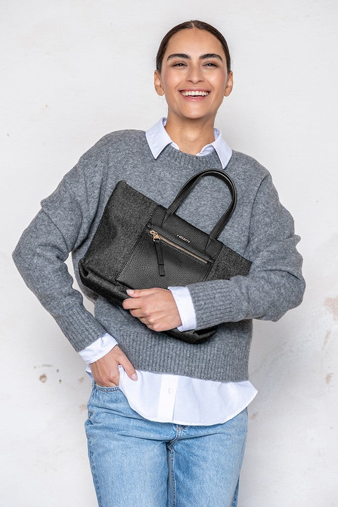 Zaino nero realizzato con materiali riciclati