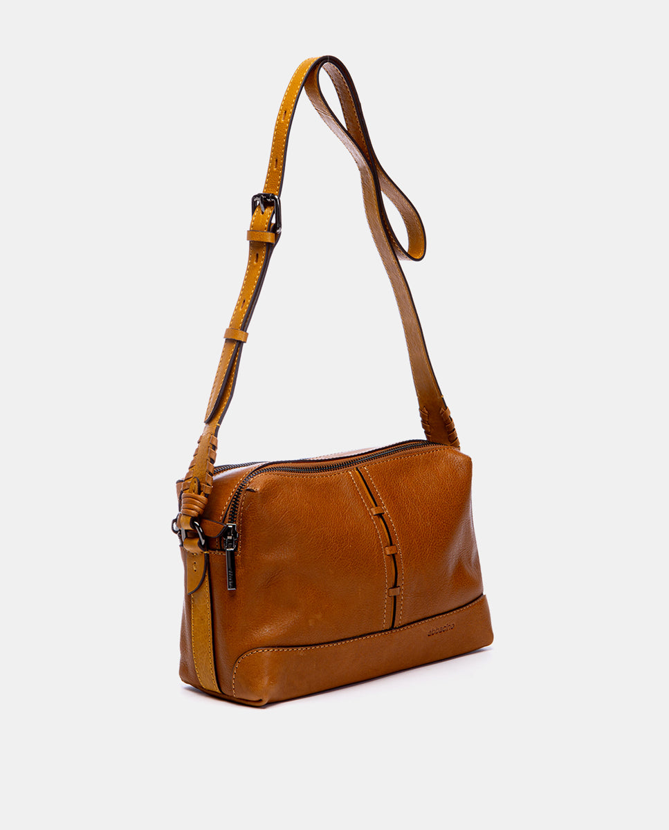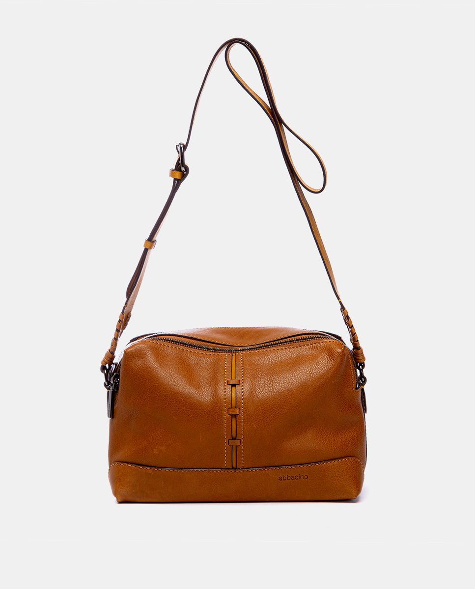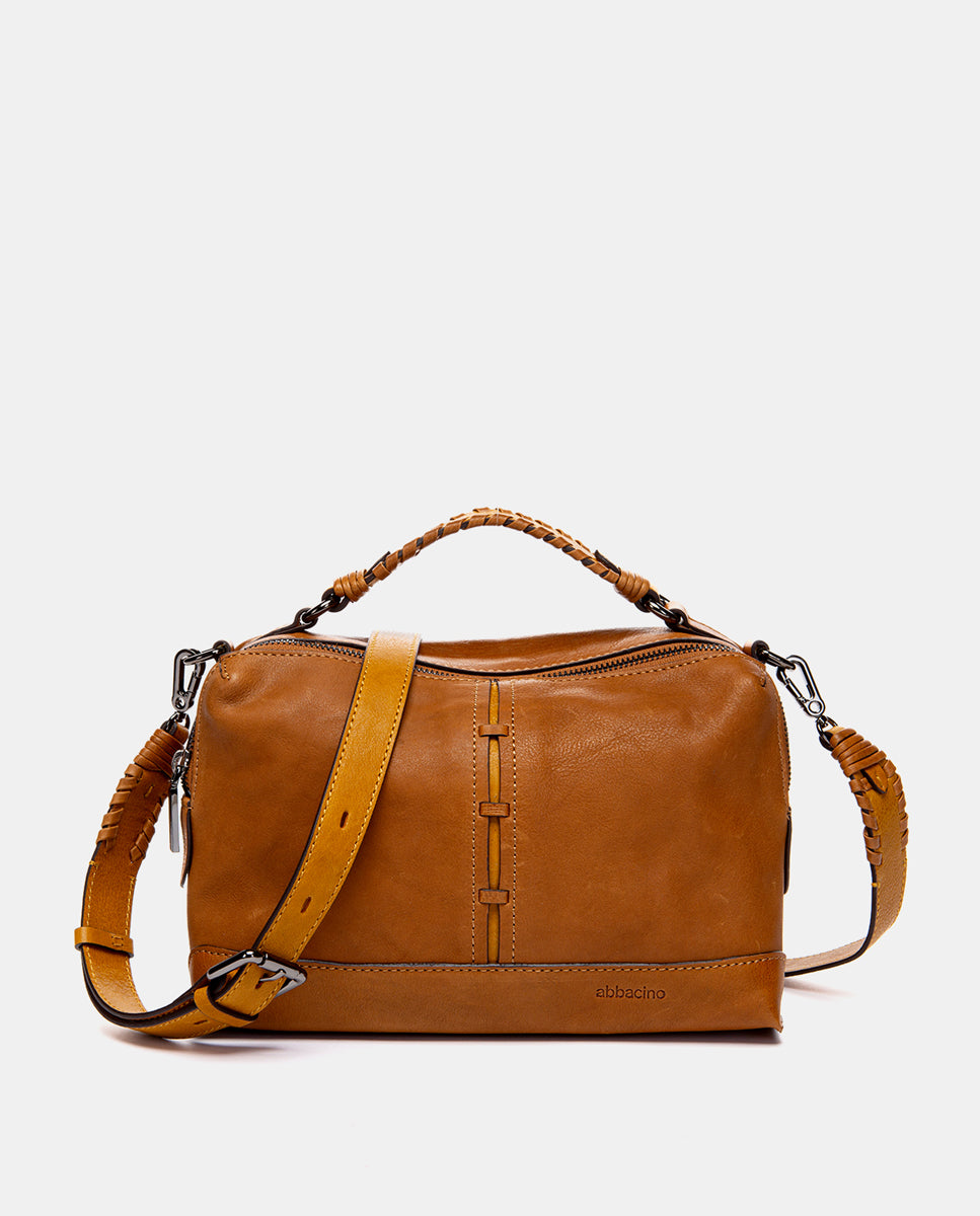 Borsa a tracolla da donna in pelle intrecciata arancione