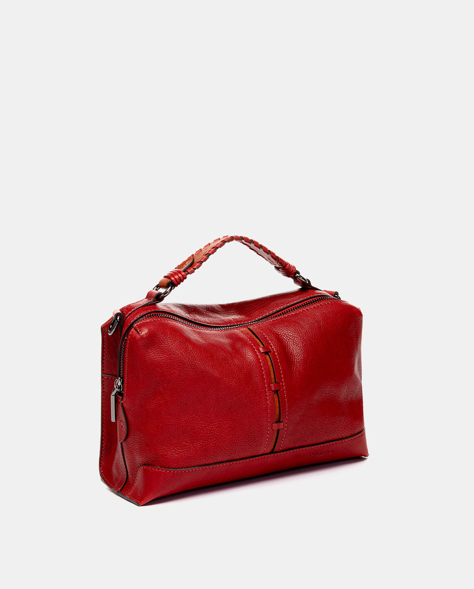 Borsa a tracolla da donna in pelle fustellata color corallo