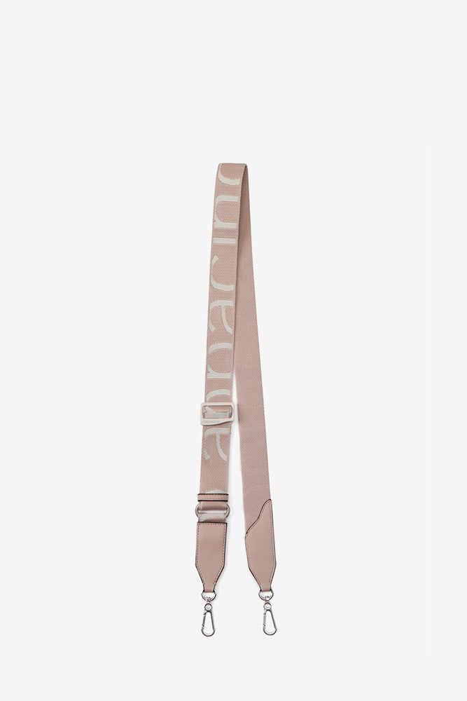 Tracolla regolabile e rimovibile personalizzata con il logo del brand. Ha due moschettoni alle estremità che permettono di trasferirlo facilmente da una borsa all'altra.