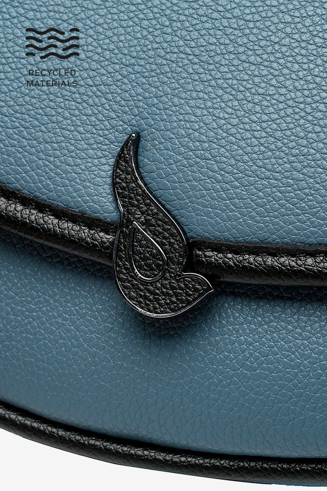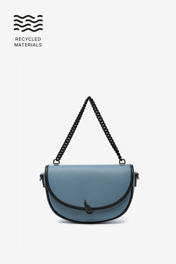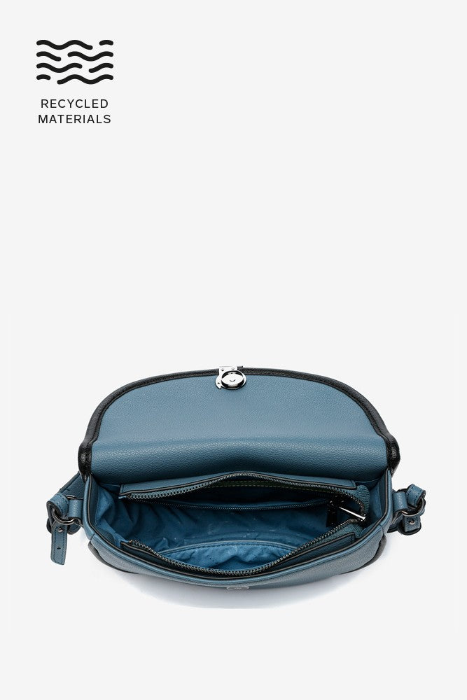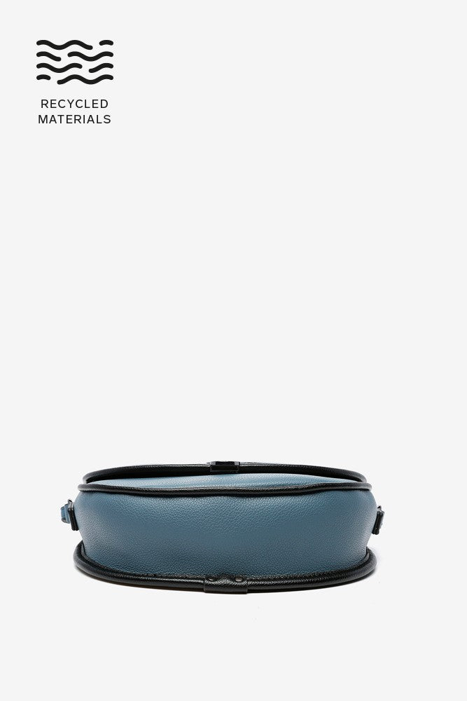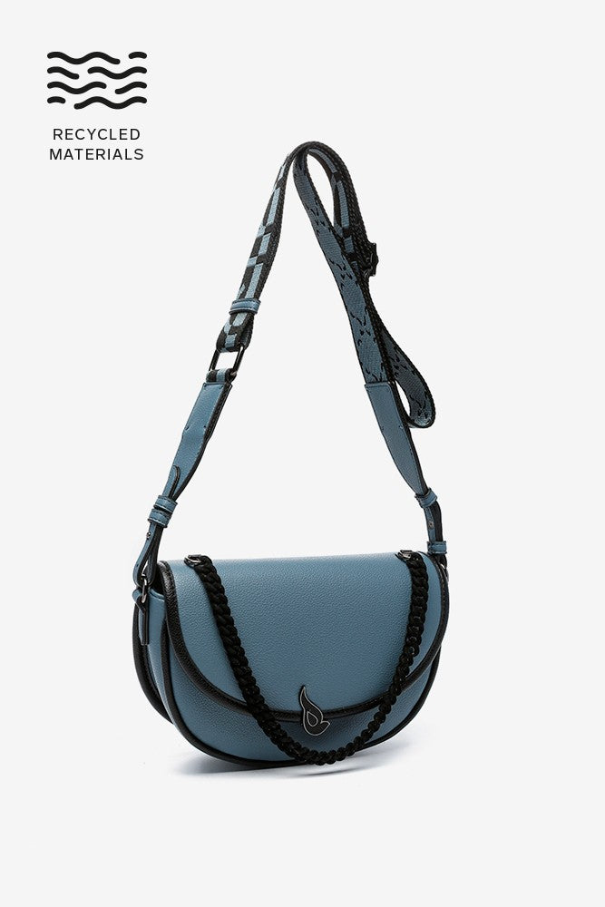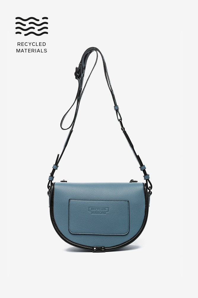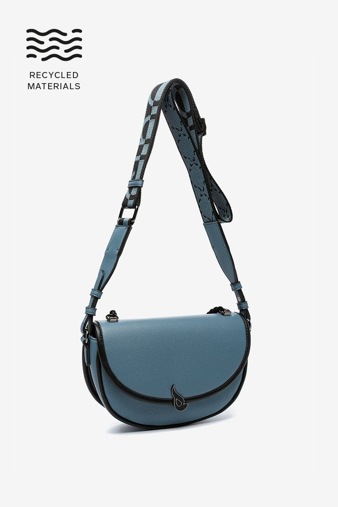 Borsa a tracolla blu a mezzaluna in materiali riciclati