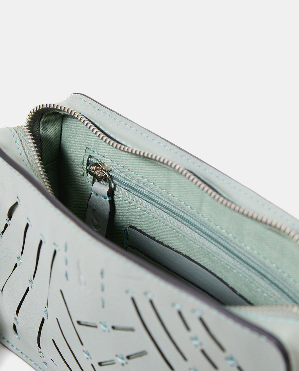 Mini borsa a tracolla da donna in pelle fustellata verde