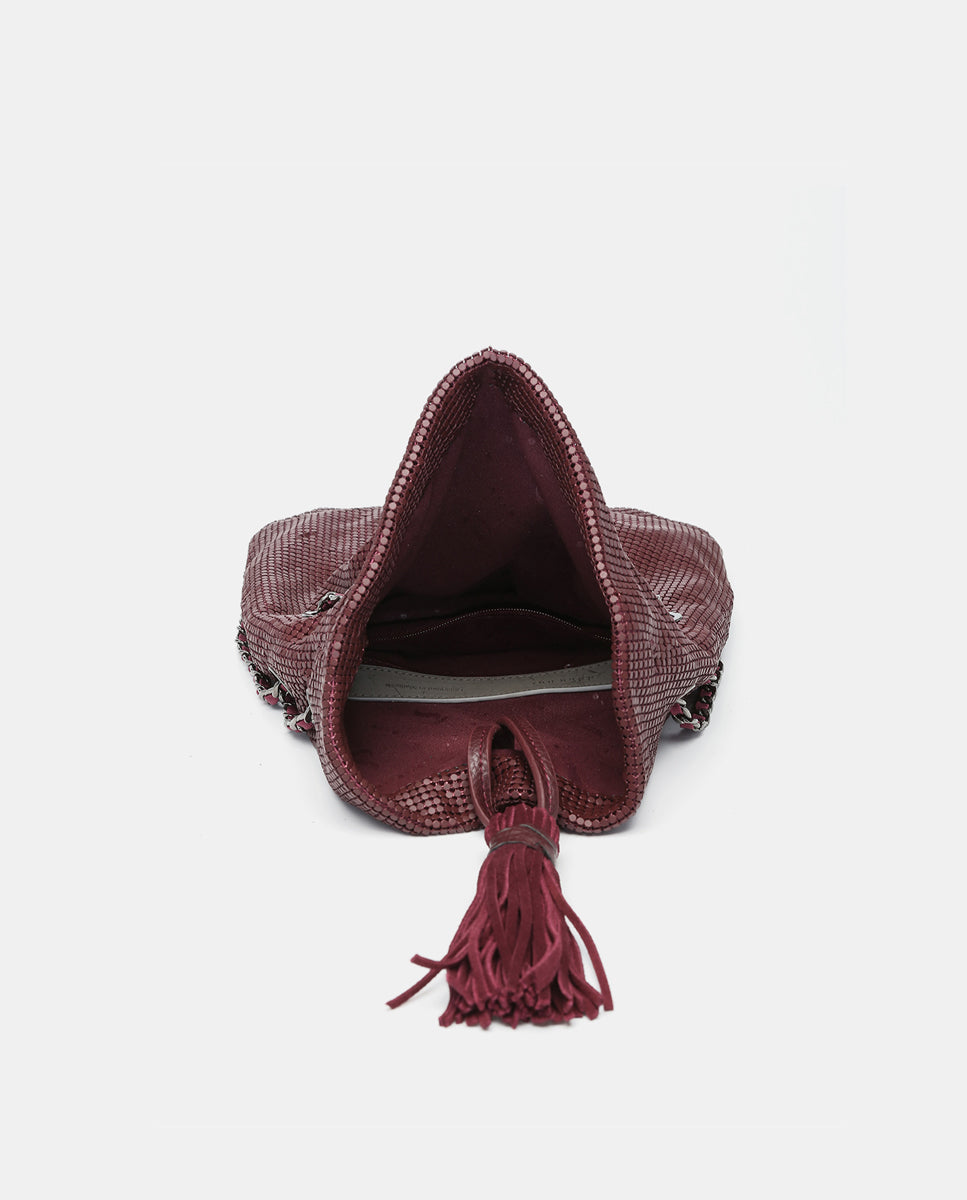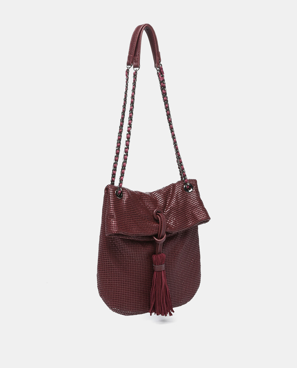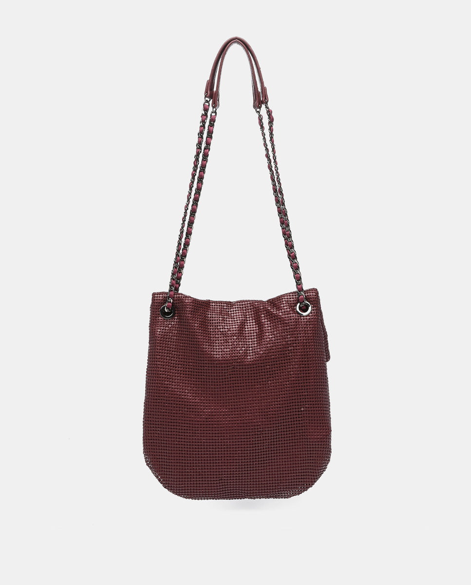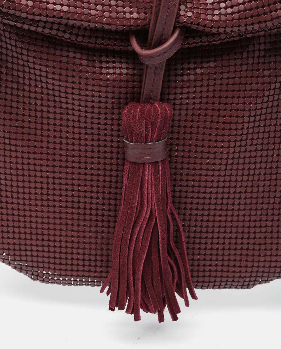 Borsa da festa a mezzaluna in rete metallica bordeaux