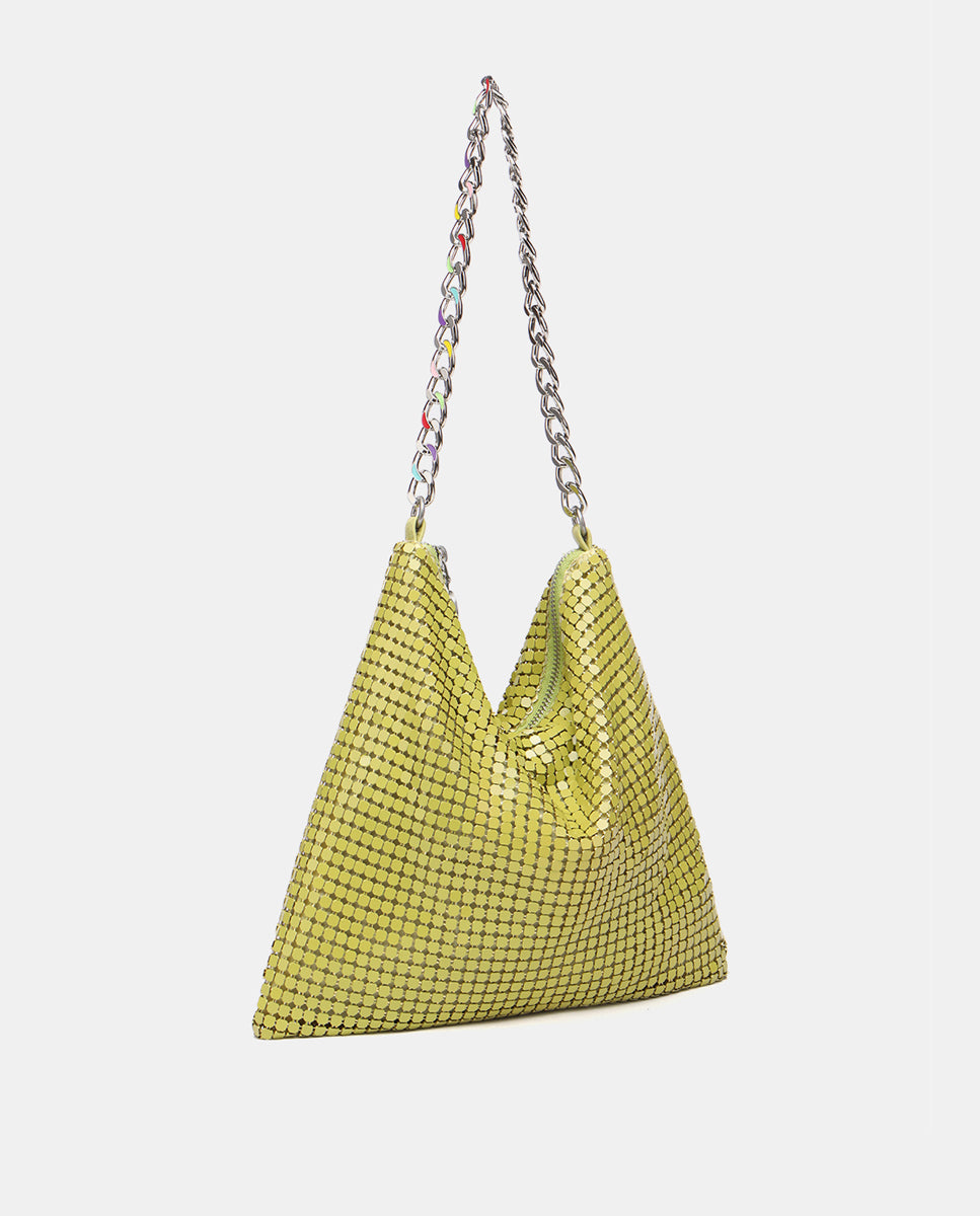 Borsa a tracolla da festa a forma di piramide per donna, realizzata in rete metallica. Un design declinato in colori stagionali che ti faranno risplendere ovunque tu vada, perfetto sia per il giorno che per la sera, è la scelta ideale per creare look unici. Le sue caratteristiche principali sono: