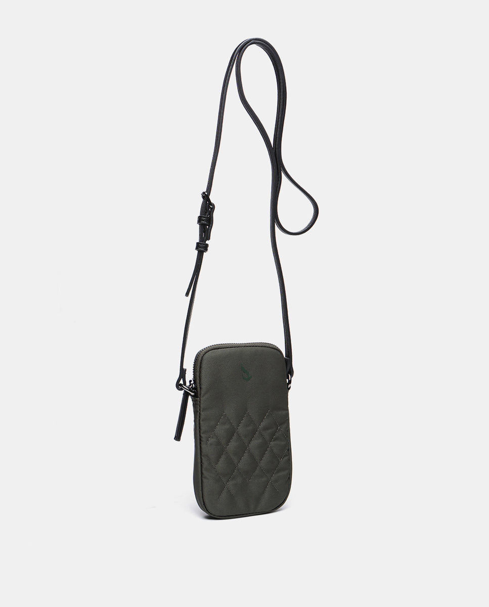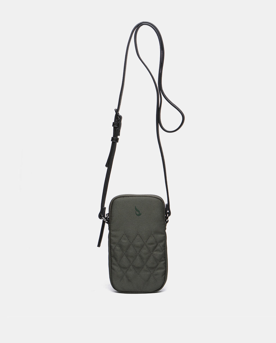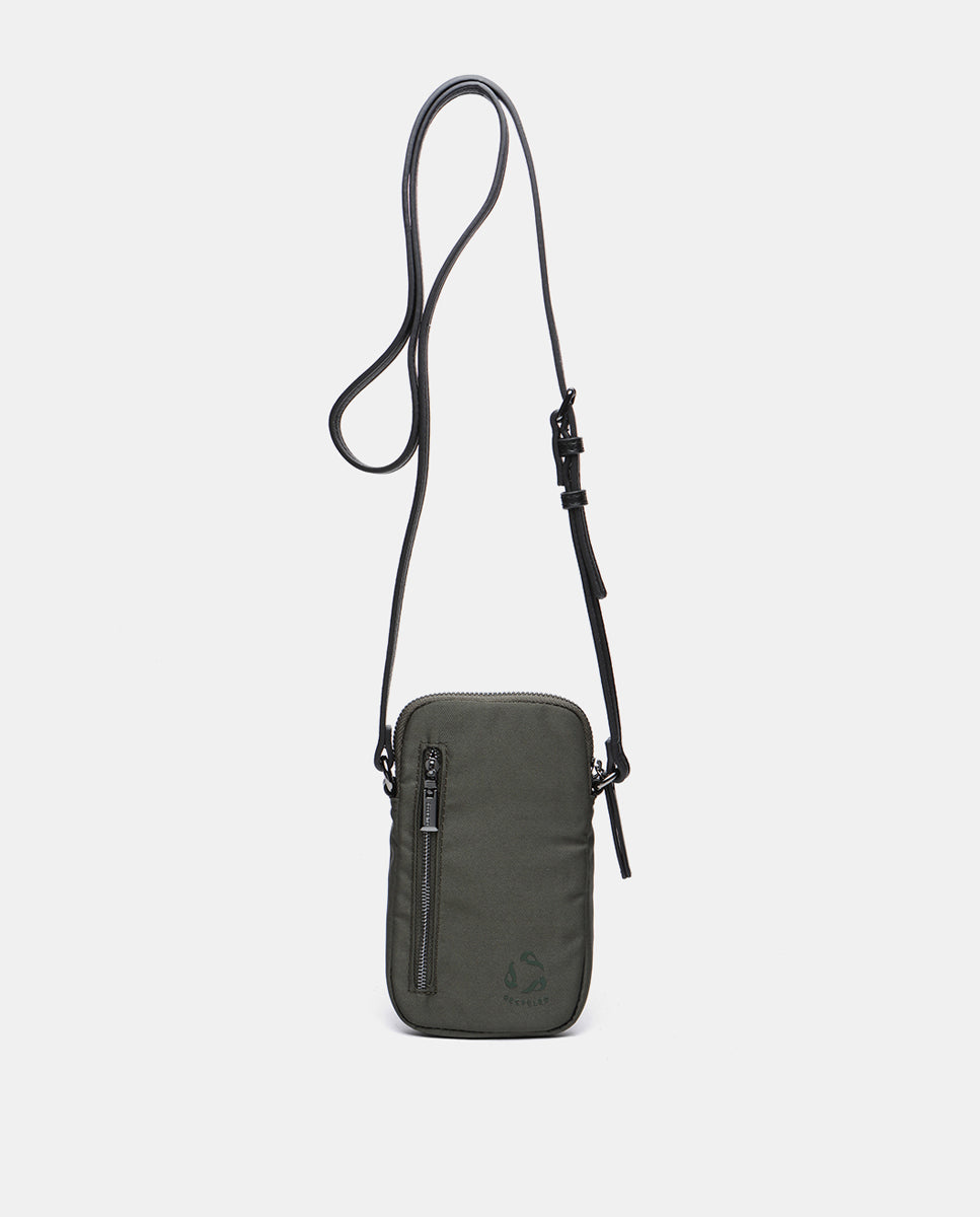 Borsa portacellulare da donna realizzata con materiali riciclati e procedimenti ecocompatibili. Combiniamo moda e sostenibilità optando per accessori eco-friendly.