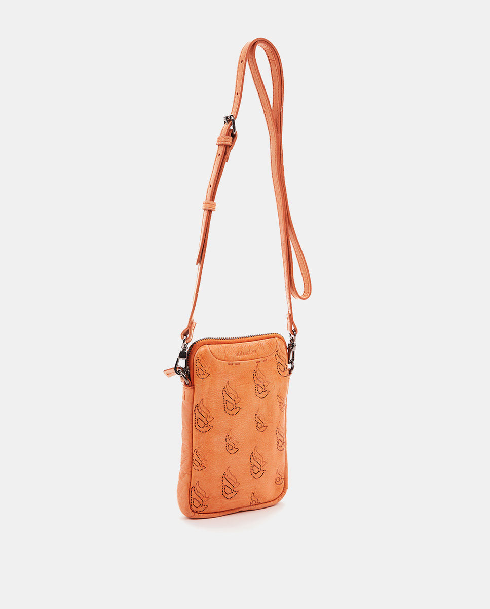 Borsa portacellulare da donna realizzata in pelle fustellata con logo del marchio e un bellissimo effetto slavato. Un formato super pratico per portare sempre con te tutto l'essenziale senza occupare troppo spazio.