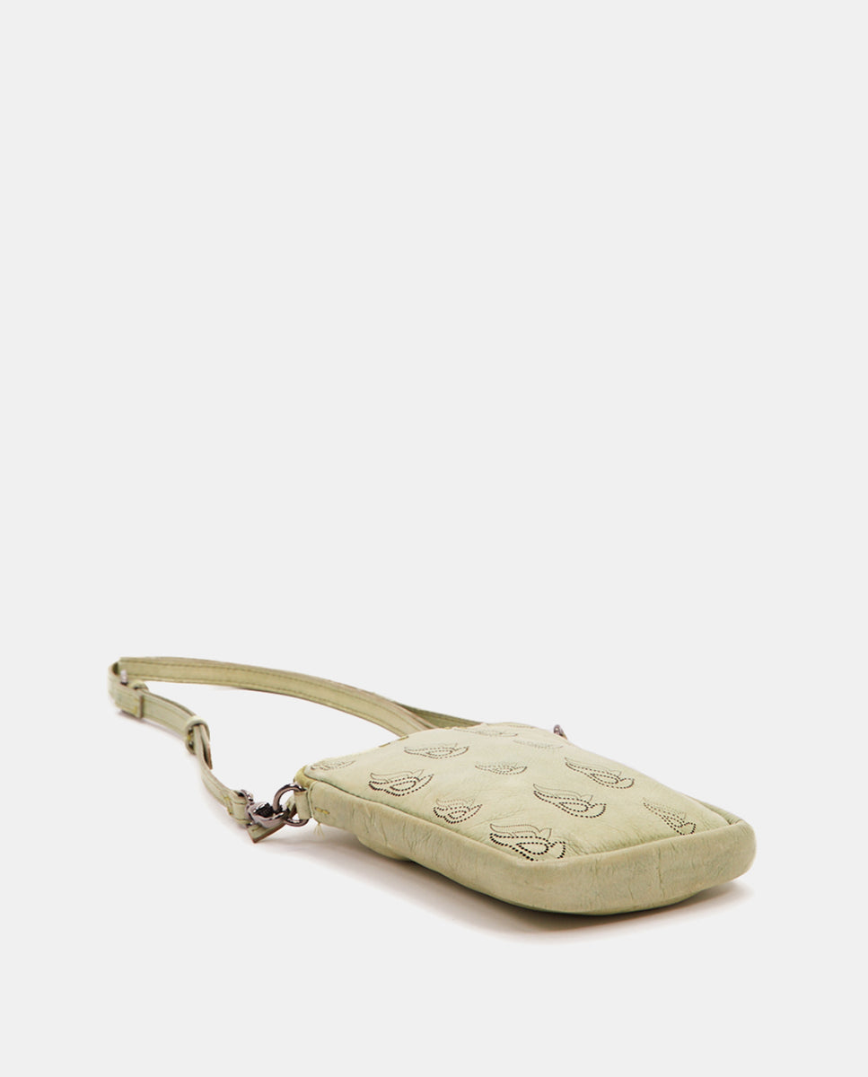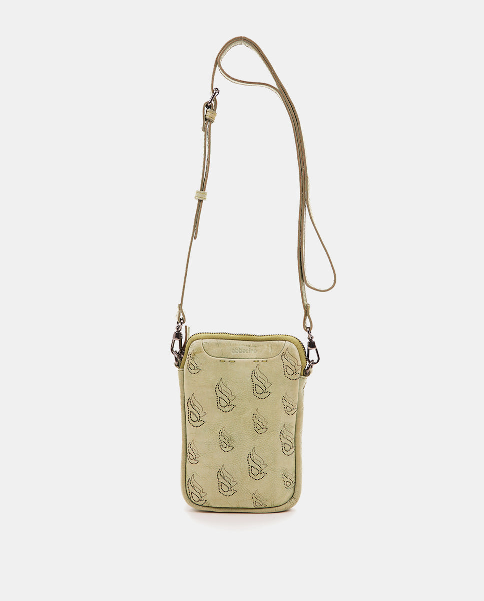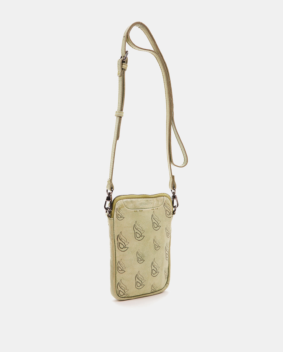 Borsa portacellulare da donna realizzata in pelle fustellata con logo del marchio e un bellissimo effetto slavato. Un formato super pratico per portare sempre con te tutto l'essenziale senza occupare troppo spazio.