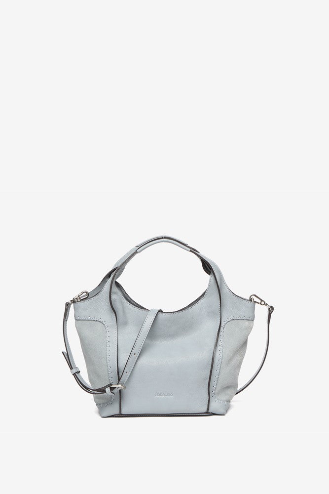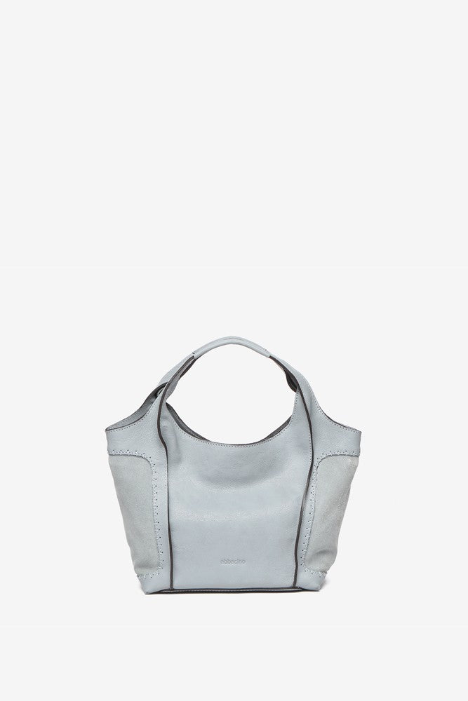 Piccola borsa shopper da donna realizzata in pregiata pelle. Un nuovo modello nel nostro catalogo che si distingue per la combinazione di pelle e camoscio. La sua pelle ultra fluida e morbida è tinta in colori facilmente abbinabili e dallo stile senza tempo. Le sue caratteristiche principali sono: