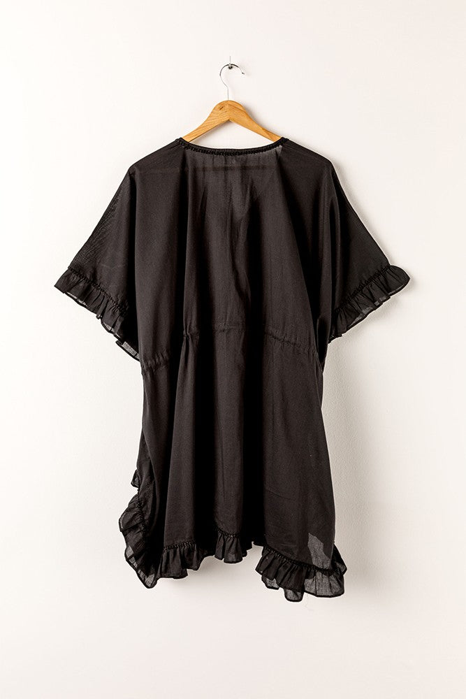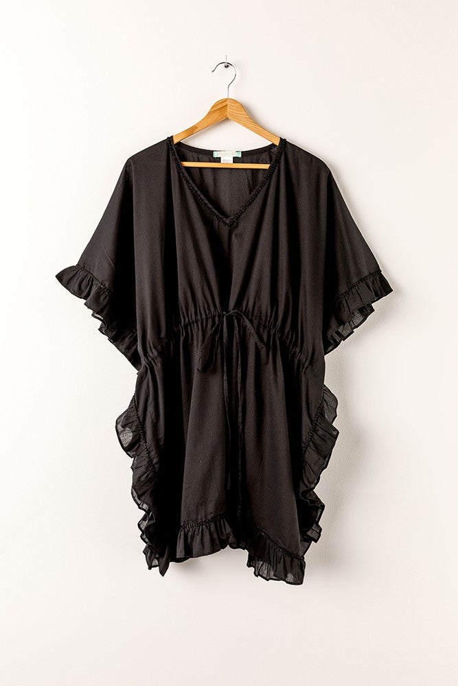 Caftano da donna in cotone semplice, nero
