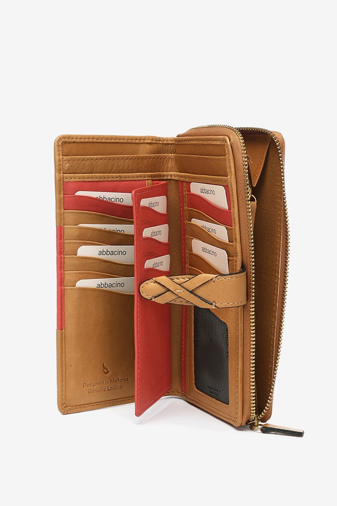 Portafoglio da donna di grandi dimensioni realizzato in pelle pregiata. Realizzato con colori stagionali e caratterizzato da una chiusura intrecciata, questo modello semplice e lineare è perfetto da abbinare alle borse primaverili ed estive. Le sue caratteristiche principali sono: