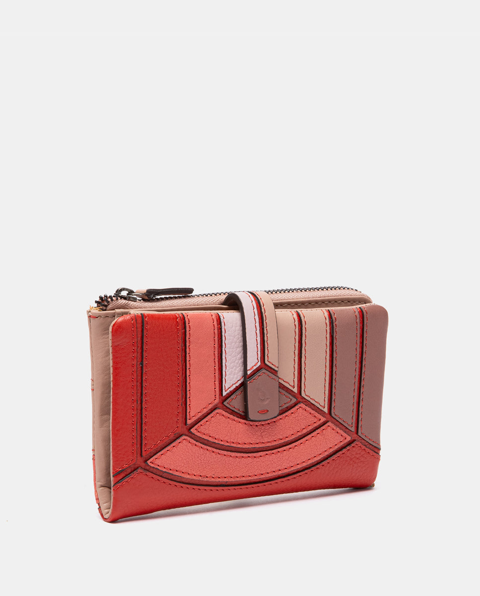 Portafoglio medio da donna realizzato in pelle, dal design che si distingue per la silhouette geometrica creata dall'unione dei suoi motivi, offrendo uno stile moderno e sofisticato. Le sue caratteristiche principali sono: