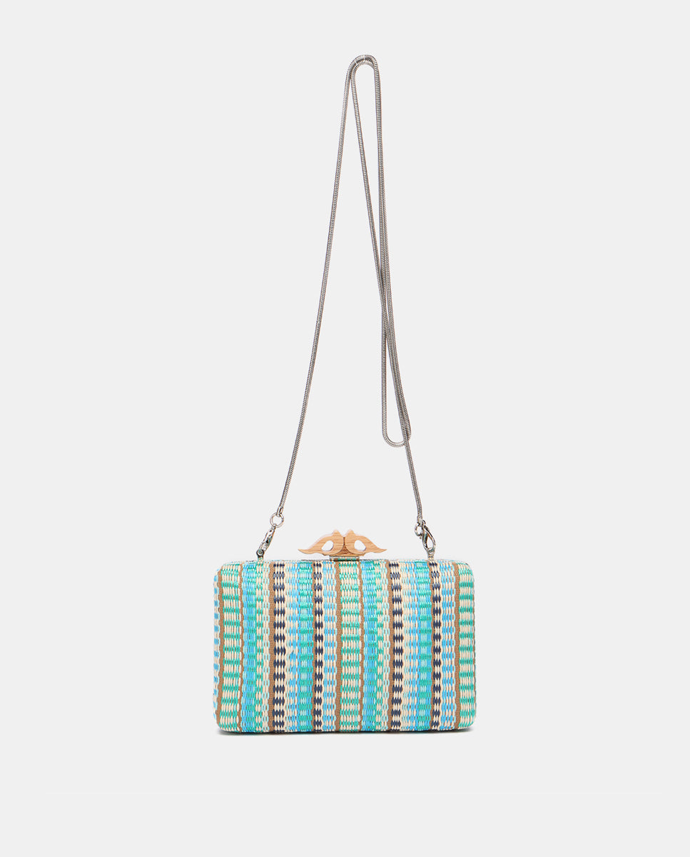 Pochette quadrata con stampa geometrica e chiusura 3D con logo Abbacino. Una borsa per eventi speciali in cui portare con sé tutto l'essenziale. Le sue caratteristiche principali sono: