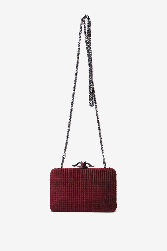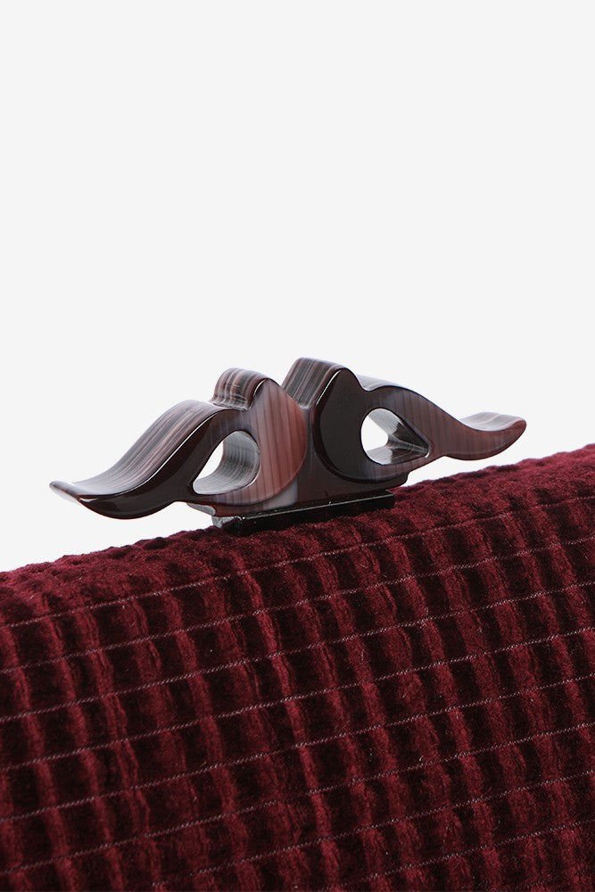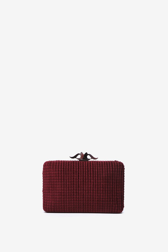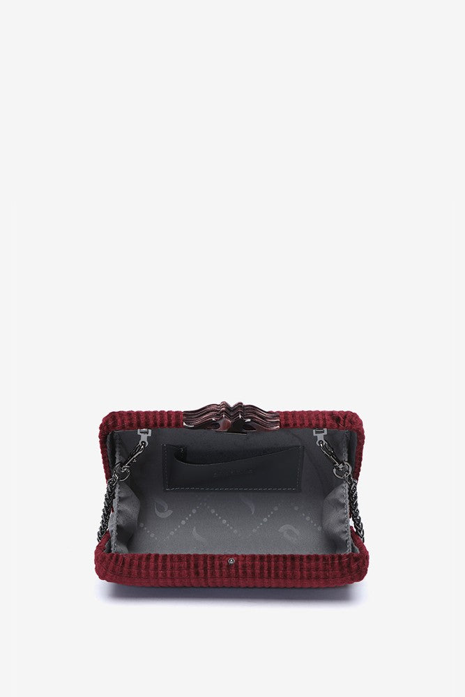 Pochette quadrata in velluto con stampa geometrica e chiusura 3D con logo Abbacino. Una borsa per eventi speciali in cui portare con sé tutto l'essenziale. Le sue caratteristiche principali sono:
