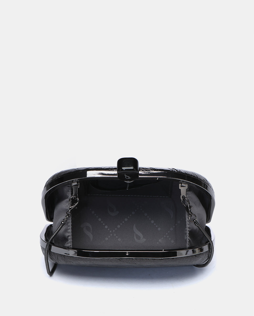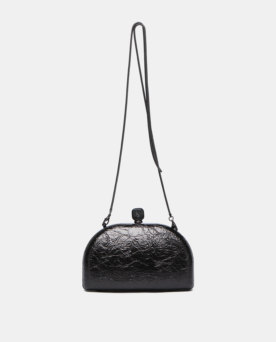 Clutch da festa con finitura metallizzata lucida. Una speciale borsa a mano a forma di mezzaluna, ideale per accompagnarti agli eventi e portare con te tutto l'essenziale. Le sue caratteristiche principali sono: