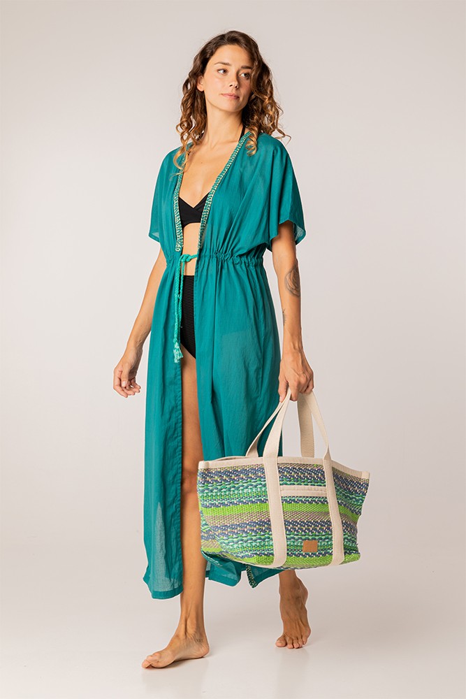 Puoi abbinare questo caftano alle nostre borse da spiaggia, agli asciugamani o alla nostra collezione in rafia .