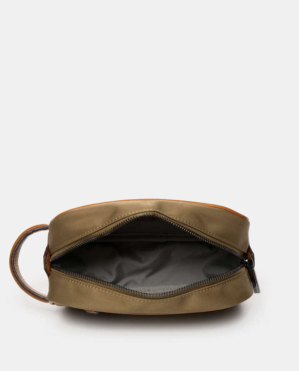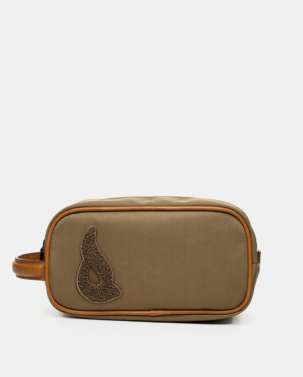 Borsa da toilette da donna realizzata con materiali di cammello riciclati
