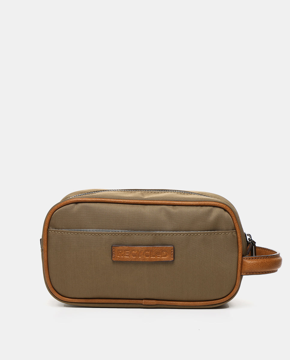 Borsa da toilette da donna con manico, realizzata con materiali riciclati e con processi che promuovono la sostenibilità. Un accessorio indispensabile per accompagnarti nelle tue gite del fine settimana o nei tuoi viaggi di lavoro. Portalo con te ovunque tu vada, in valigia o in borsa.