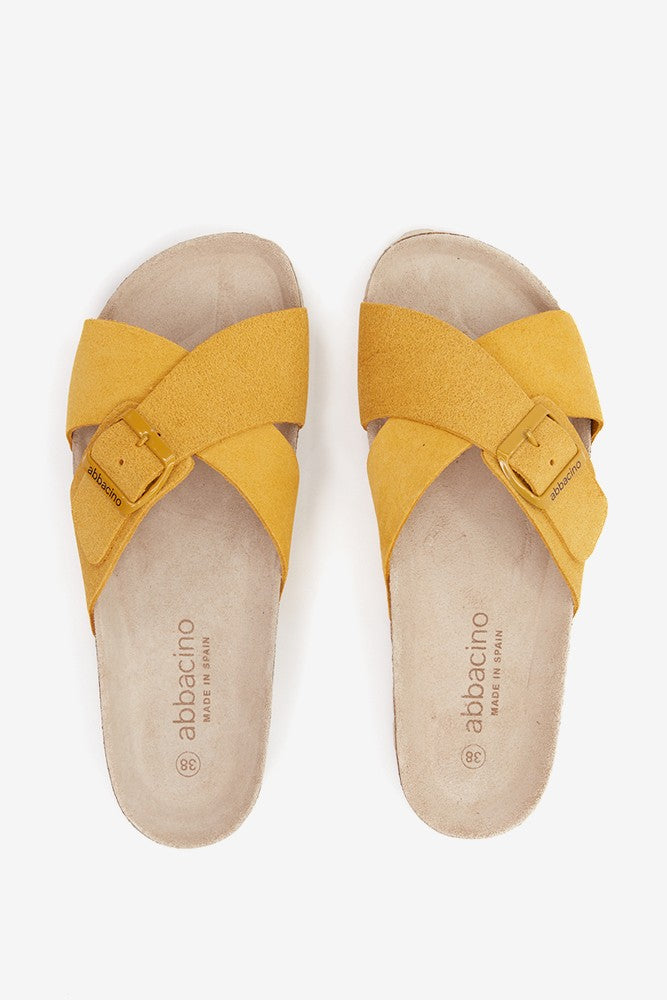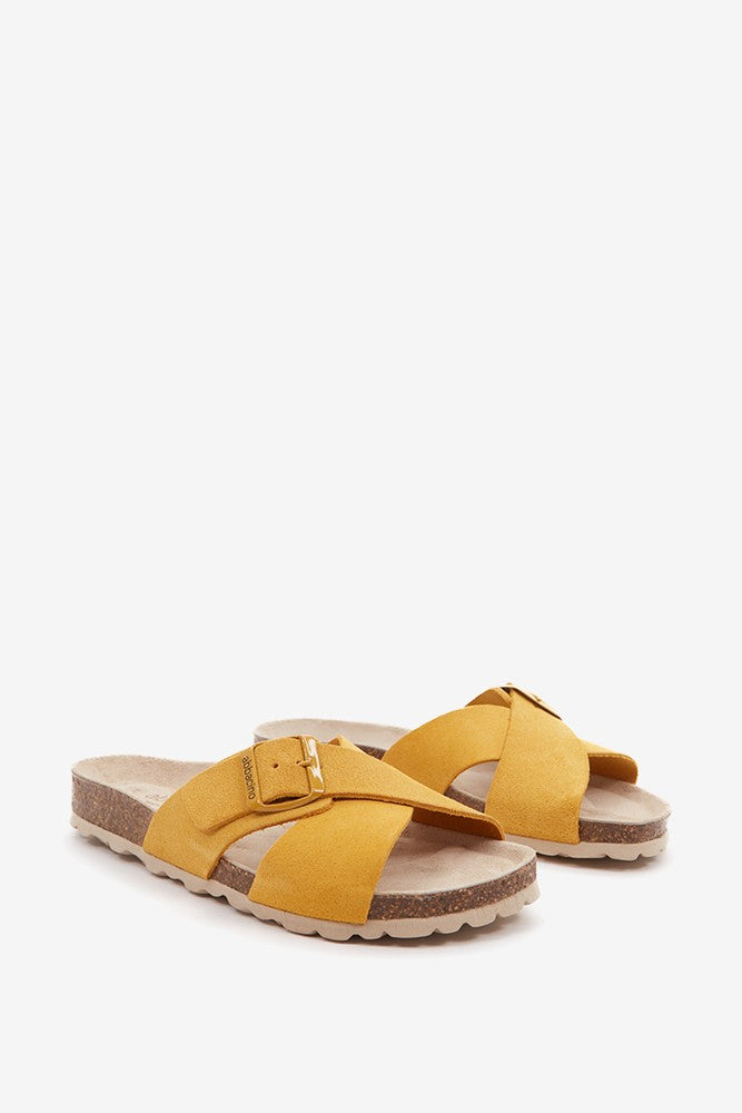 Sandali da donna in pelle scamosciata BIO con fibbia. Un design classico ideale per aggiungere un tocco casual e rilassato ai tuoi look estivi. Questo modello è caratterizzato da una tomaia che si adatta perfettamente al piede grazie alla fibbia regolabile. Inoltre, la suola scamosciata imbottita offre un comfort extra passo dopo passo (suola in EVA).