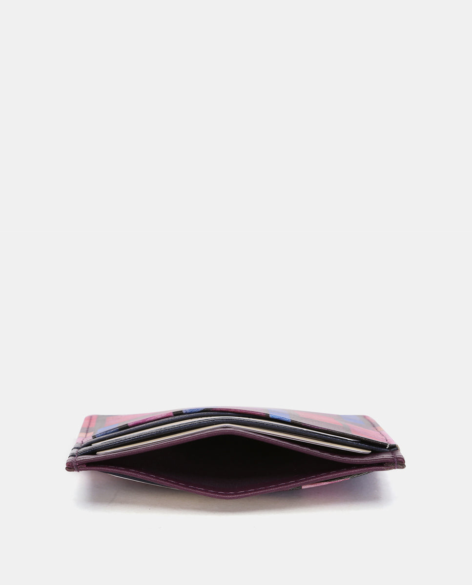 Porta carte realizzato in pregiata pelle. Un design stampato con una sorprendente stampa geometrica tipica del marchio. Tinto nei colori di stagione, è l'ideale per portare sempre con sé tutte le carte e averle in ordine. Le sue caratteristiche principali sono: