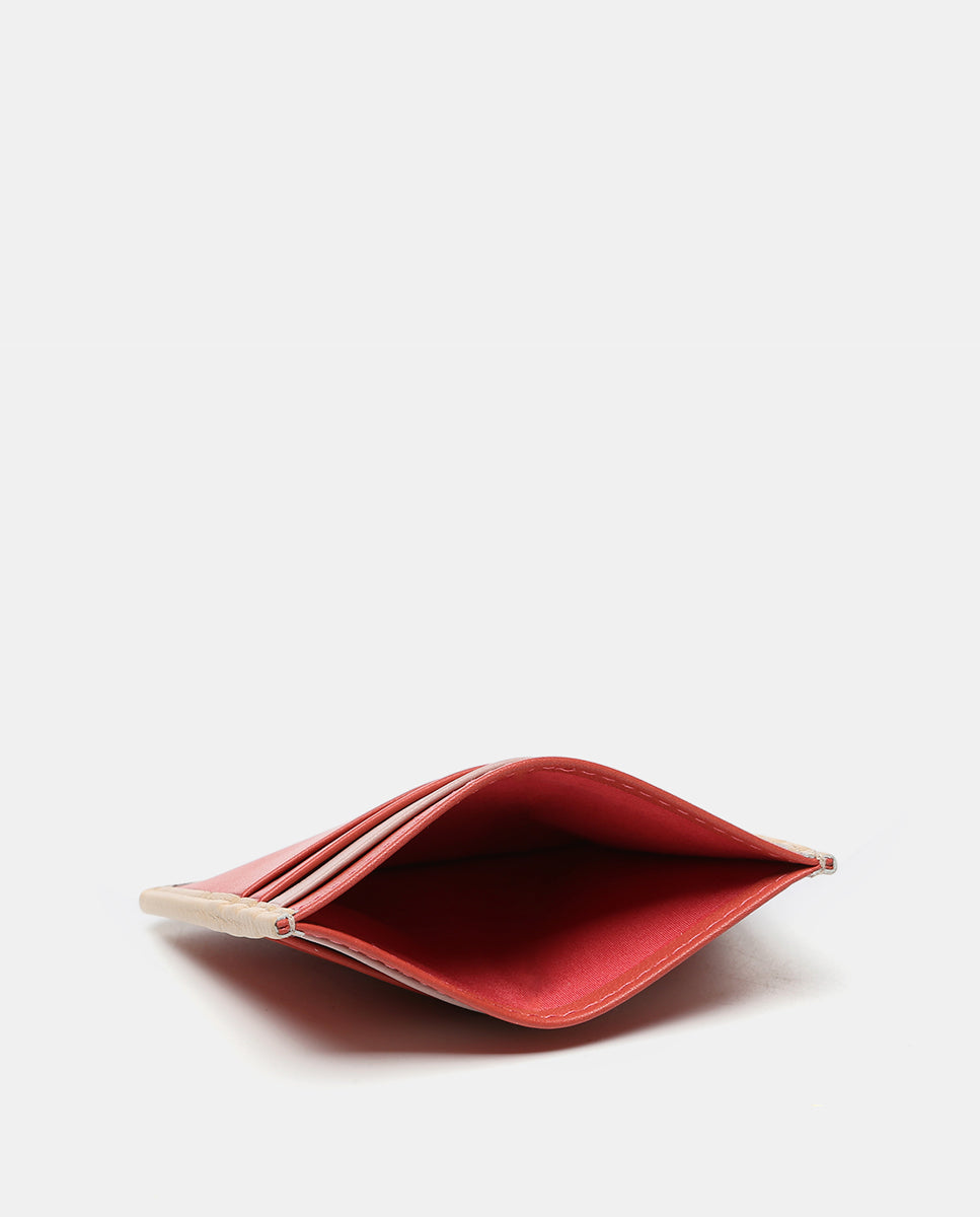 Porta carte in pelle corallo