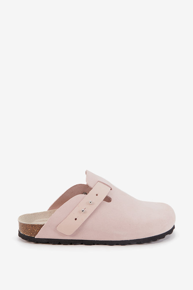 Zoccoli da donna regolabili in pelle scamosciata. Un design classico e senza tempo realizzato con materiali di alta qualità. La sua estetica minimalista e versatile lo rende la scelta ideale per l'uso quotidiano, offrendo stile e benessere a ogni passo. La soletta si adatta alla conformazione naturale del piede, garantendo un supporto plantare eccellente e un'ammortizzazione ottimale. (suola in EVA).