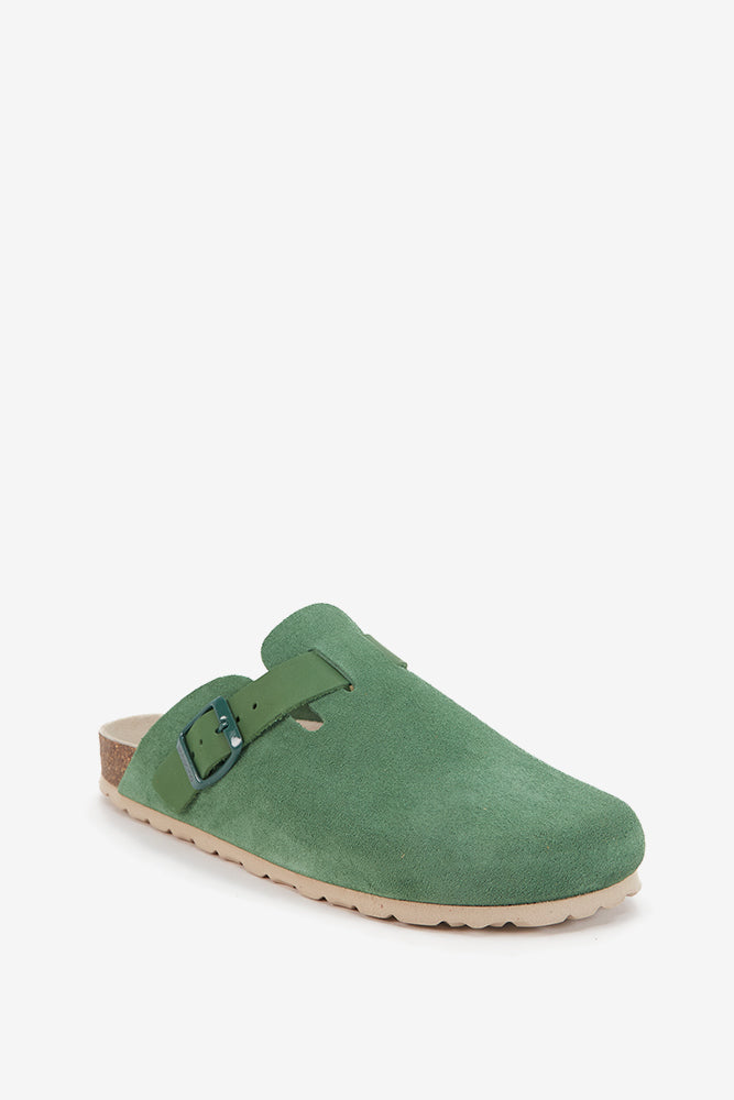 zoccolo in pelle scamosciata verde