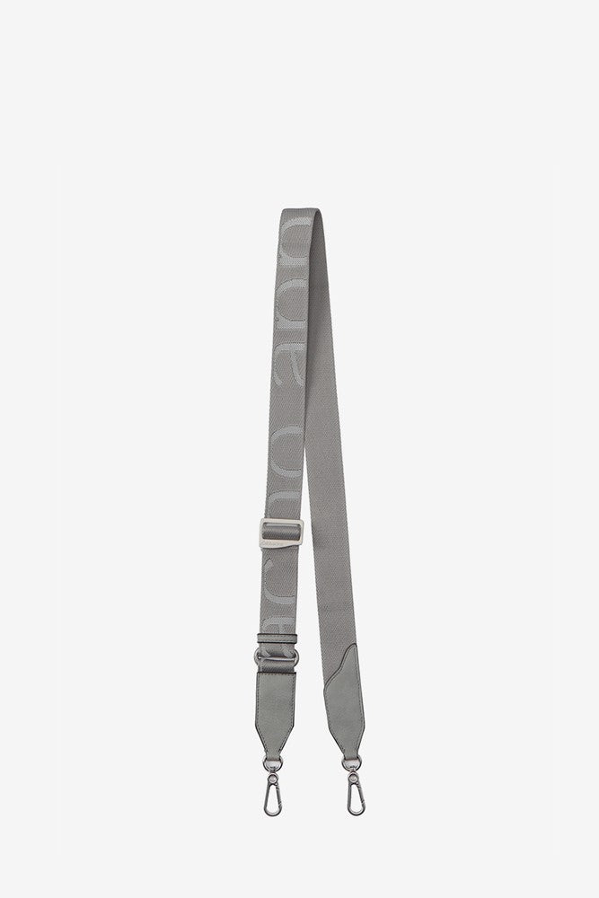 Asa bandolera regulable de quita y pon personalizada con el logotipo de la marca. Dispone de dos mosquetones en sus extremos que permiten cambiarla de un bolso a otra de forma sencilla.
